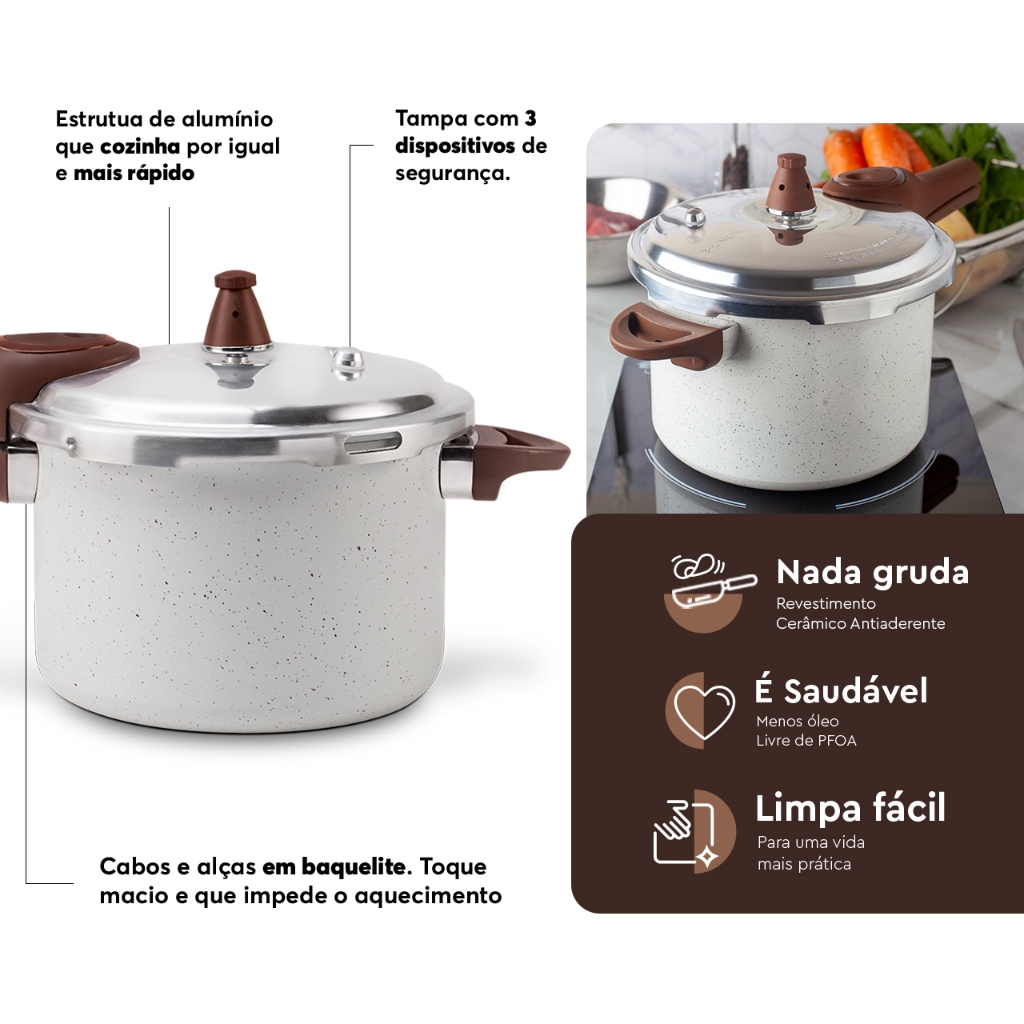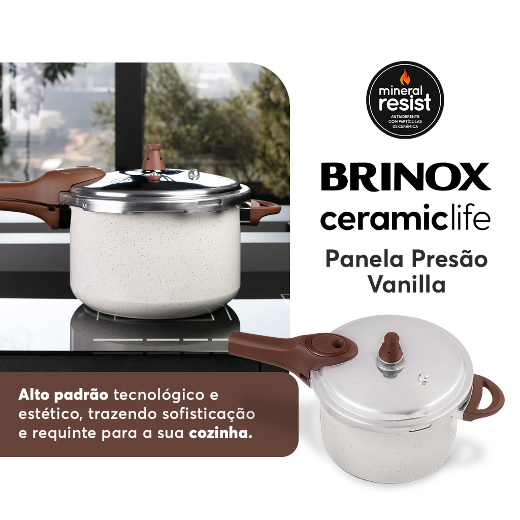 Panela de Pressão Com Indução Brinox Pressure 4,2 L - 20x14,5 cm Vanilla