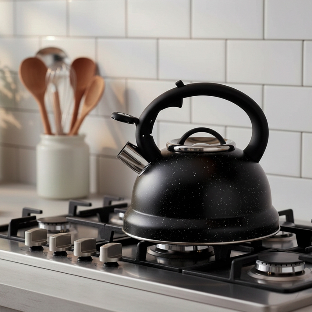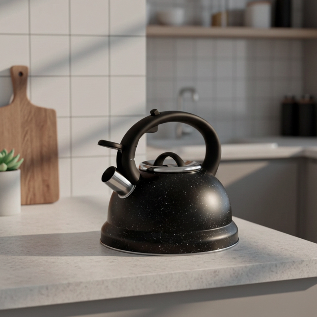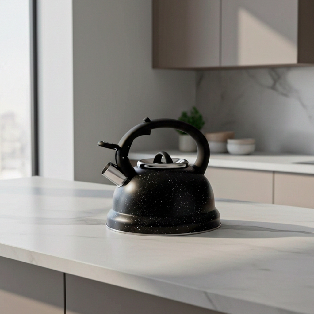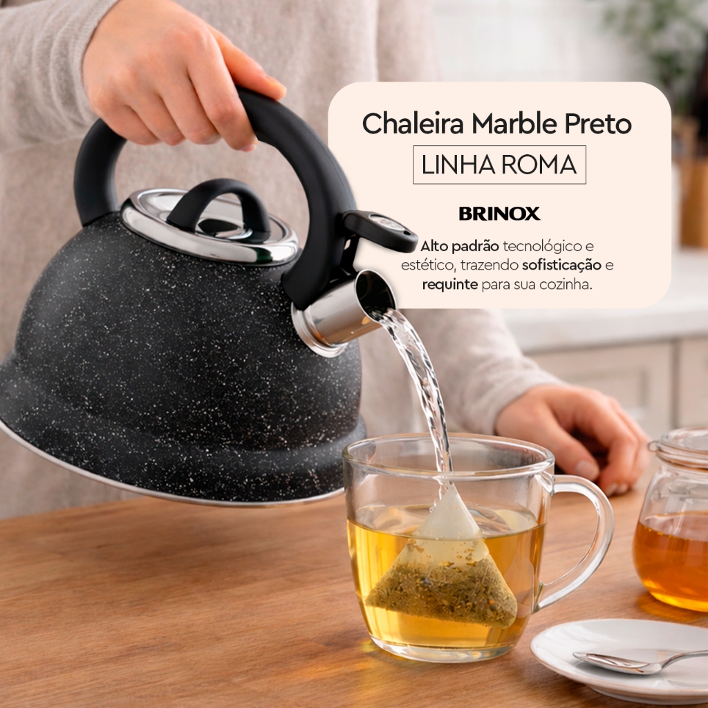 Chaleira Brinox 2,7 L com Apito Linha Roma Preto Marble