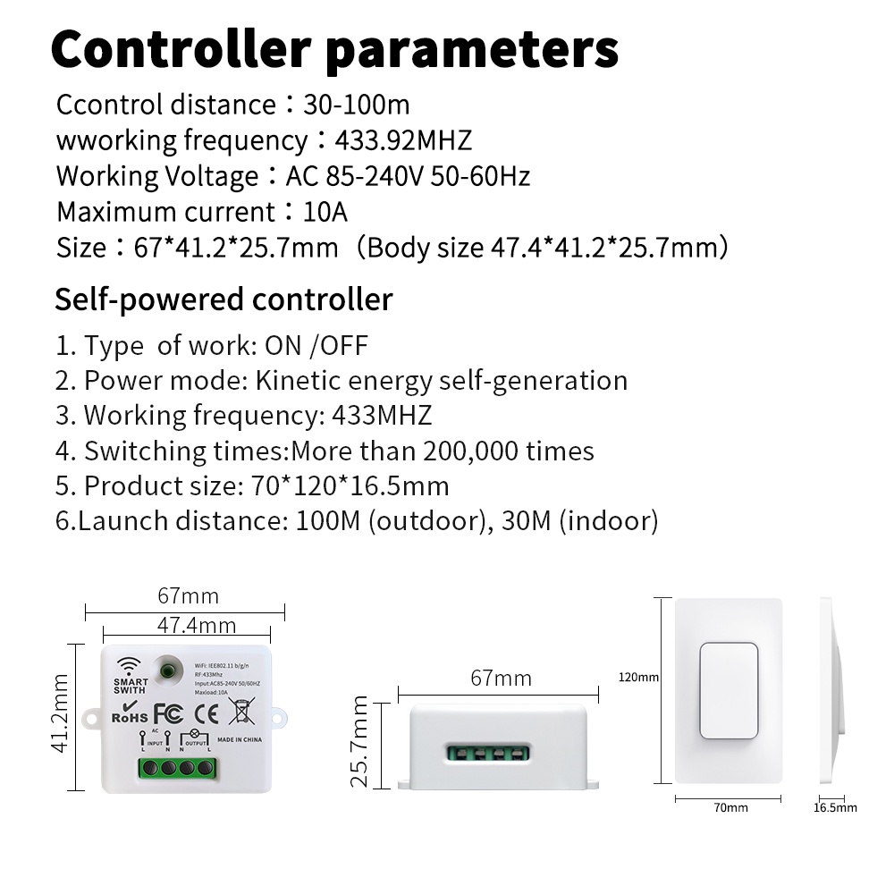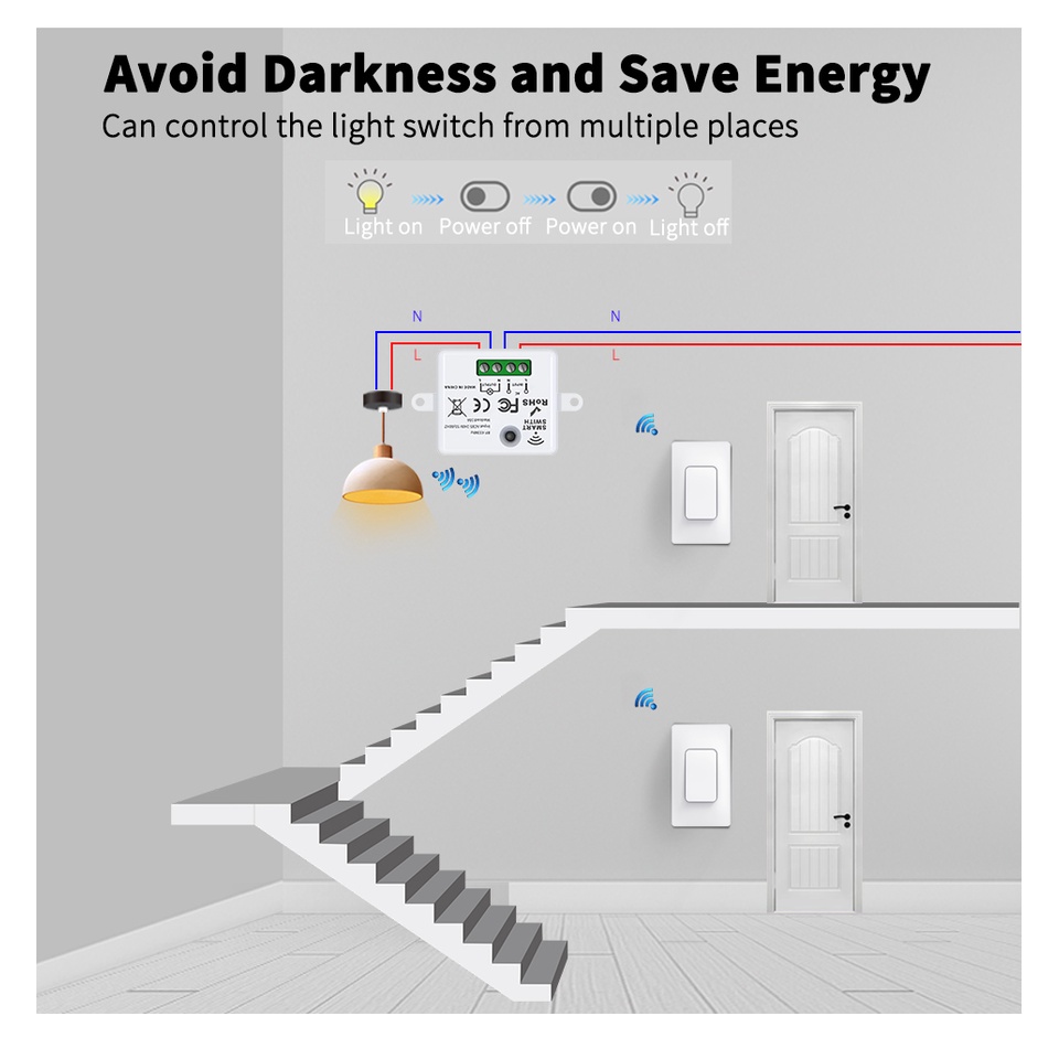 Interruptor Inteligente De Parede Sem Fio À Prova D'água Luz Retrofit Necessidade De Não é necessária bateria