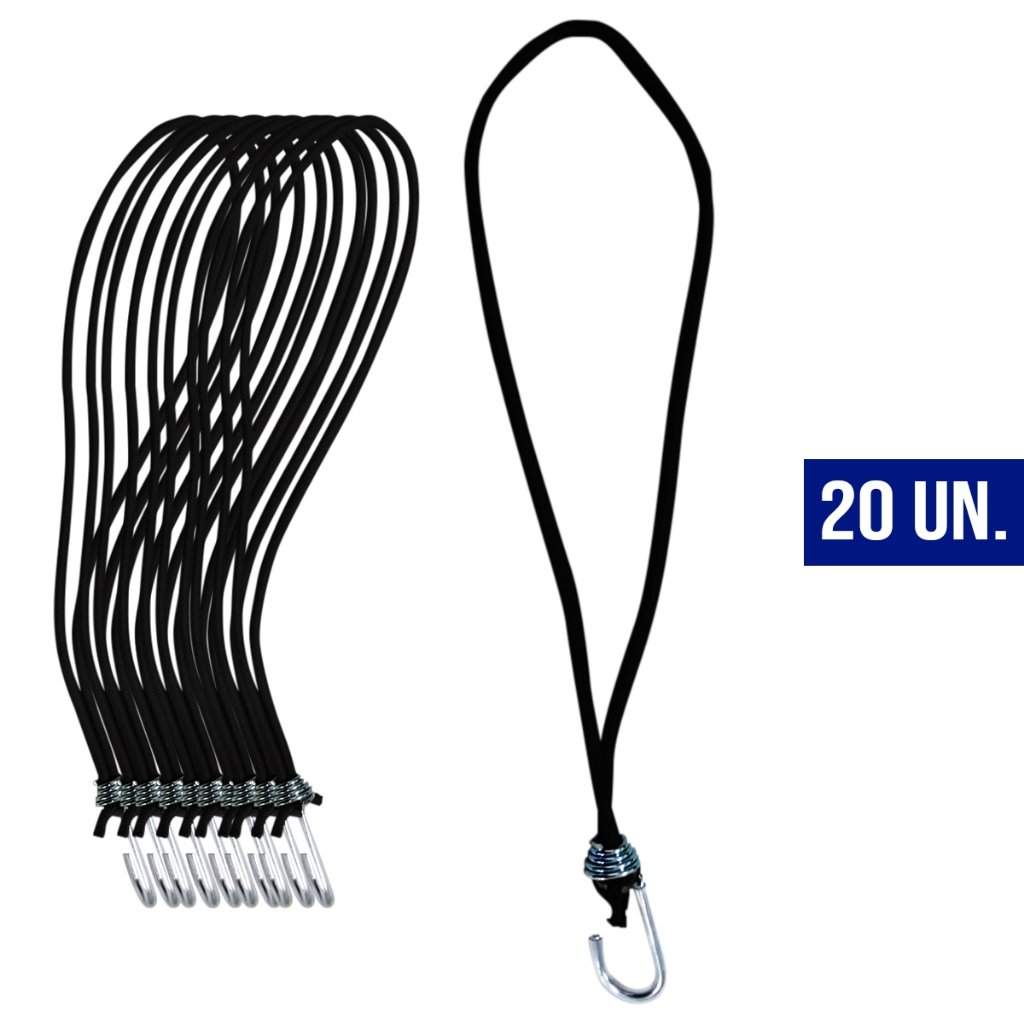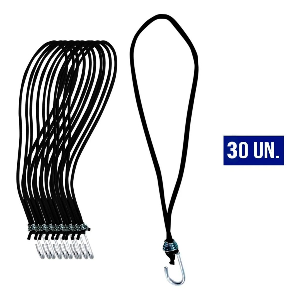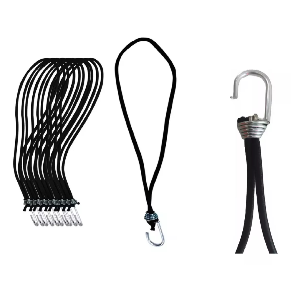 kit Extensor Elástico Corda Fixador Lona Caminhão Moto Carro Carga 35cm Preto