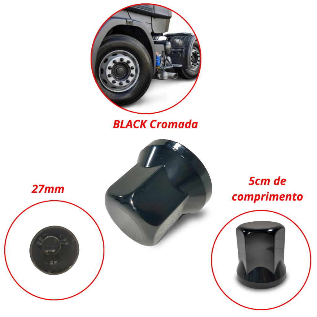 KIT CAPAS DE PORCA SEXTAVADA 27 MM BLACK PRETO