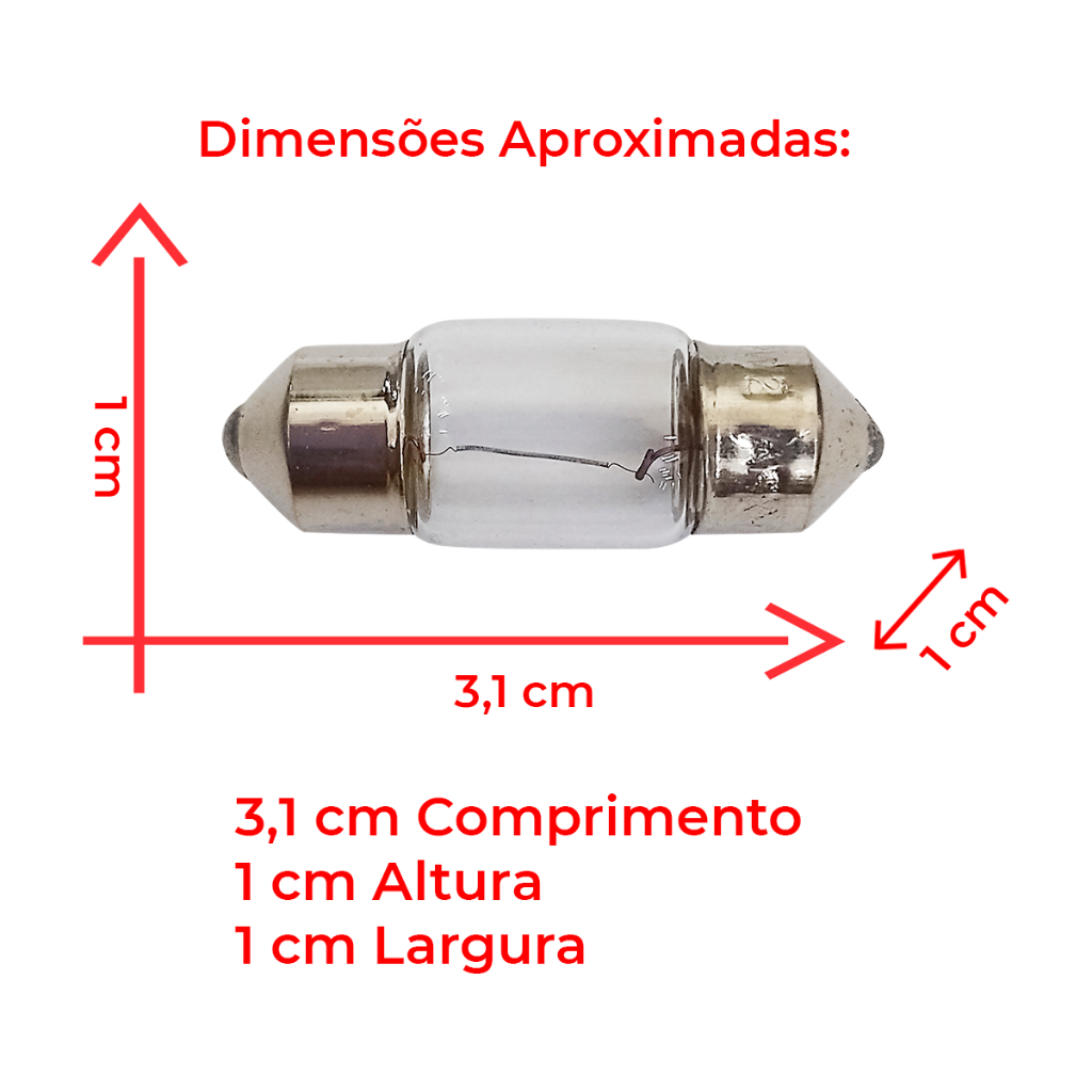 Lâmpada Torpedo Pequena 31mm Clear 12v 5w Luz Teto - 2/6/10 peças