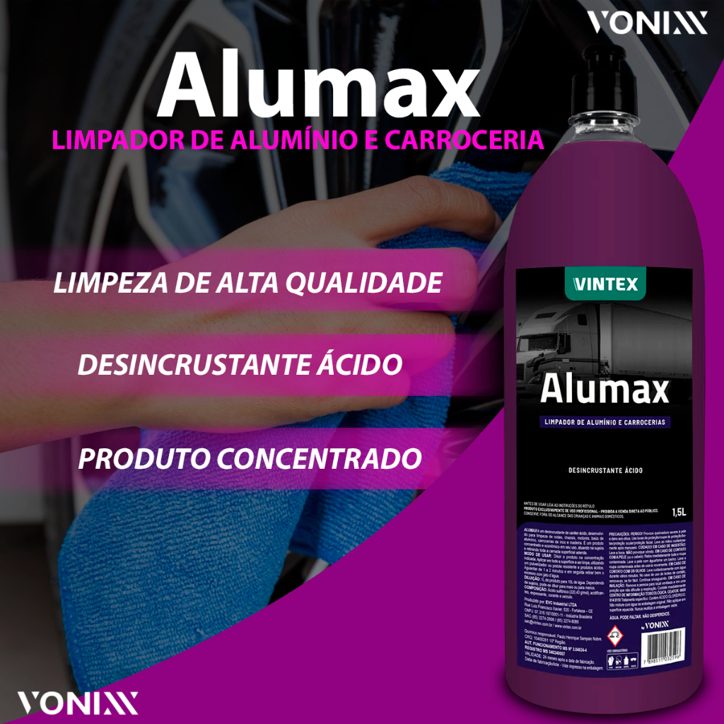 Alumax Vonixx Limpa Alumínio Rodas Baú Motor Chassi Vintex