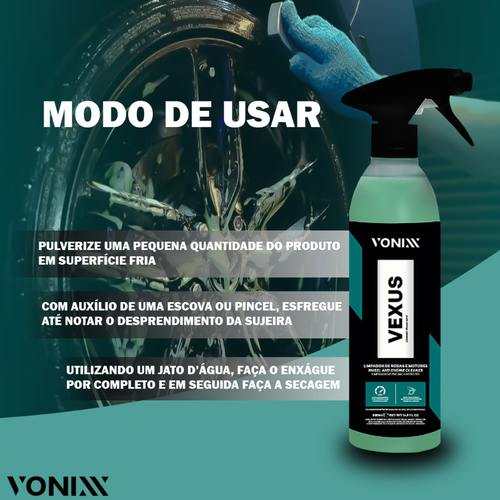 Vexus Vonixx Limpador Limpa Rodas E Motor Pincel Pano
