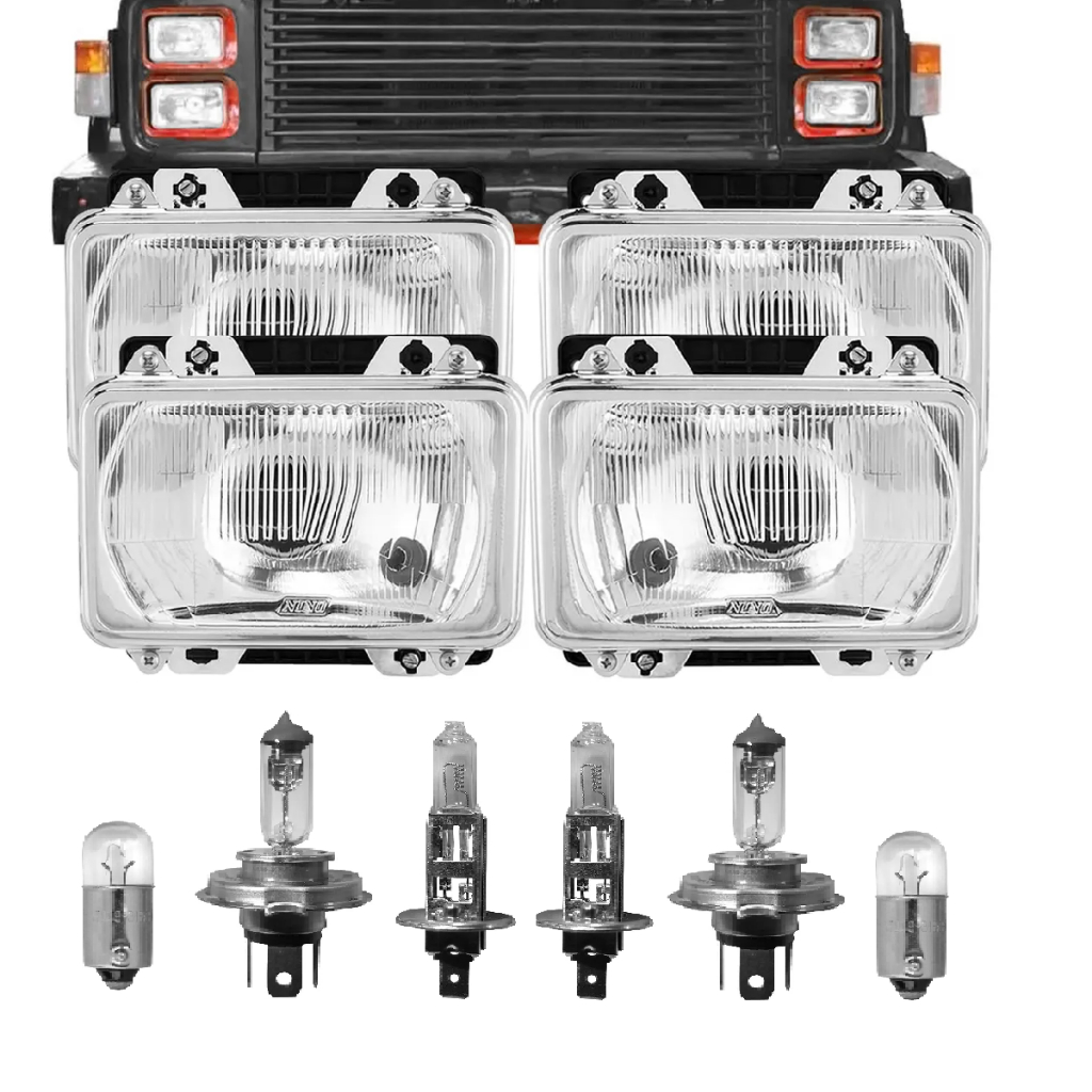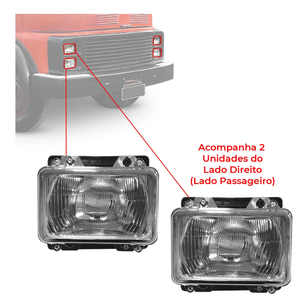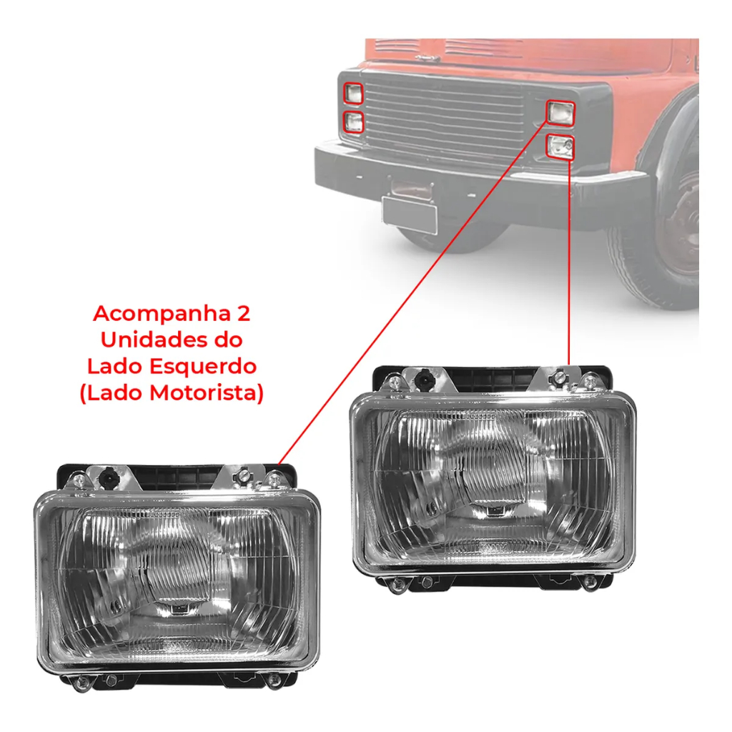 Kit Faróis com Lâmpada Mb 1113 1313 1513 2013 Cara Preta