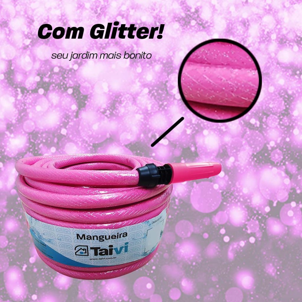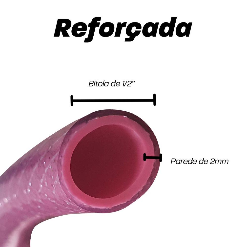 Kit Mangueira Trançada Neon 1/2" X 2,00mm + Suporte + Torneira (Rosa) 10 Metros
