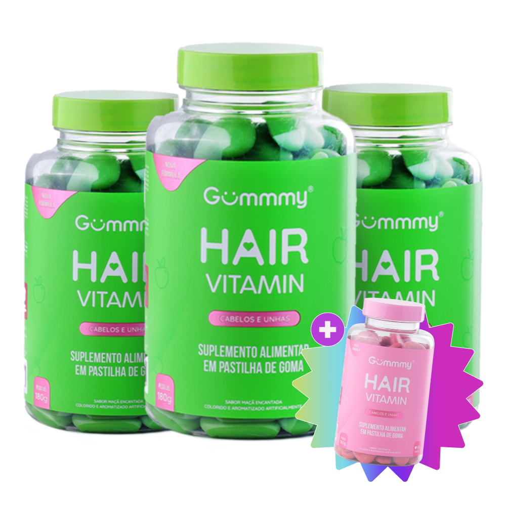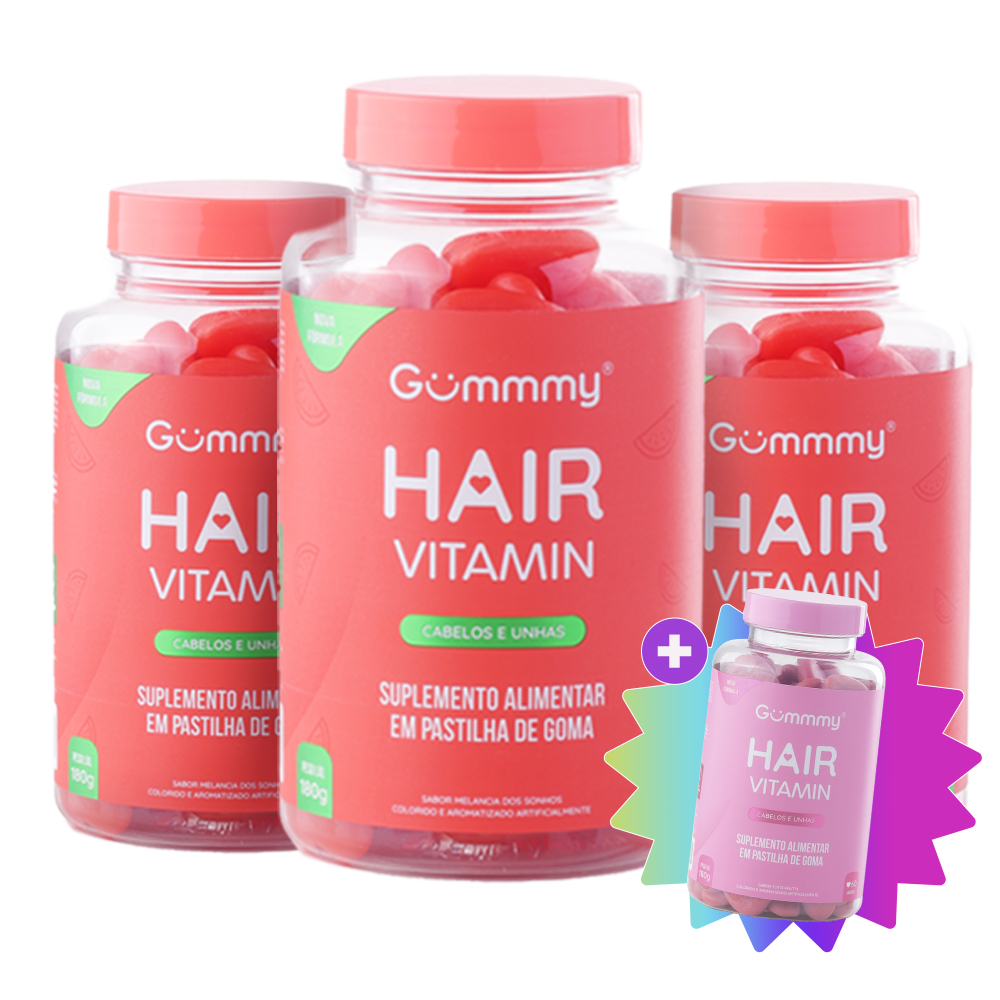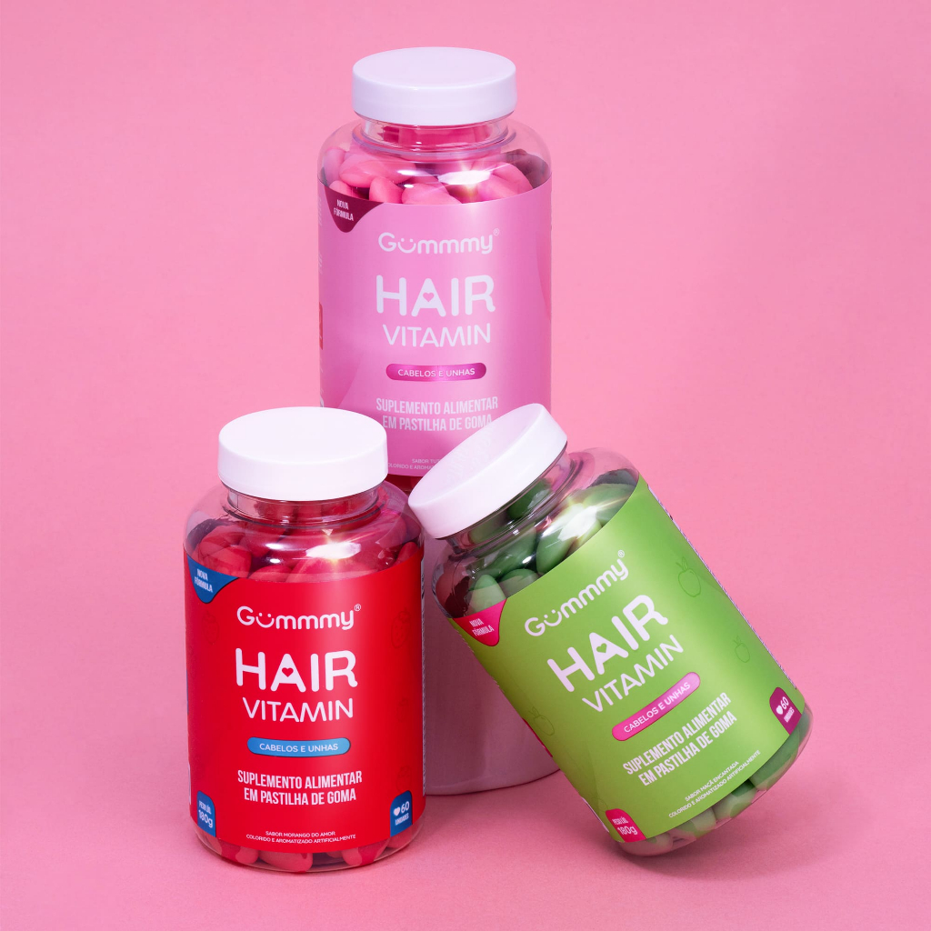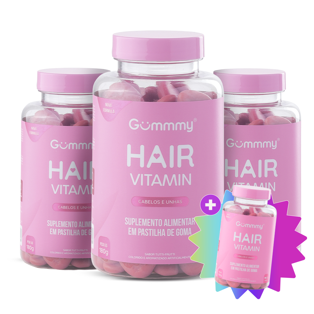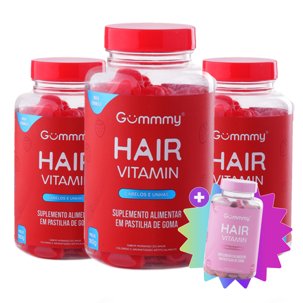 Kit 3 Gummy Hair + 1 Pote Extra - Vitamina Para Unhas E Cabelos Em Goma