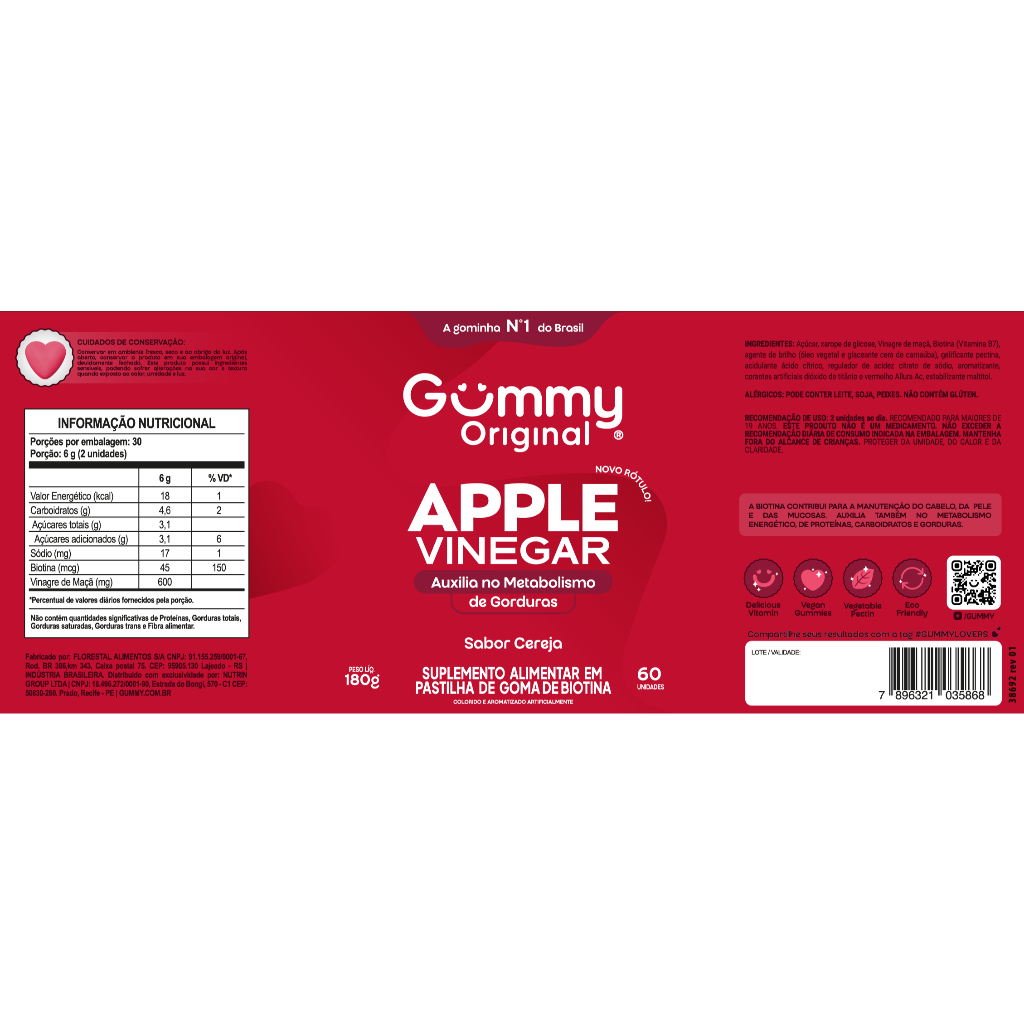 Gummy Original - Vinagre de Maçã Biotina Gominha Goma de Maçã