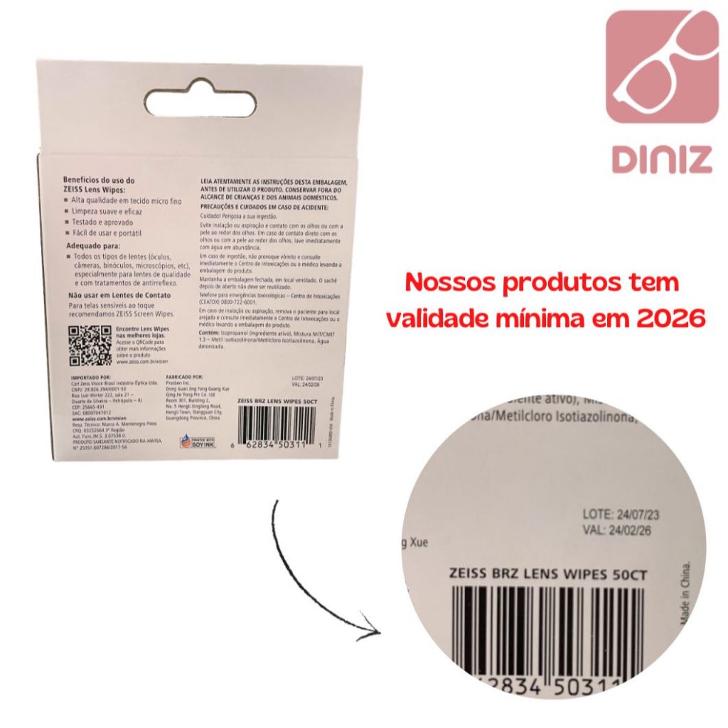 Zeiss Lens Wipes com 50 unidades - Lenços umedecidos - Limpador de Óculos