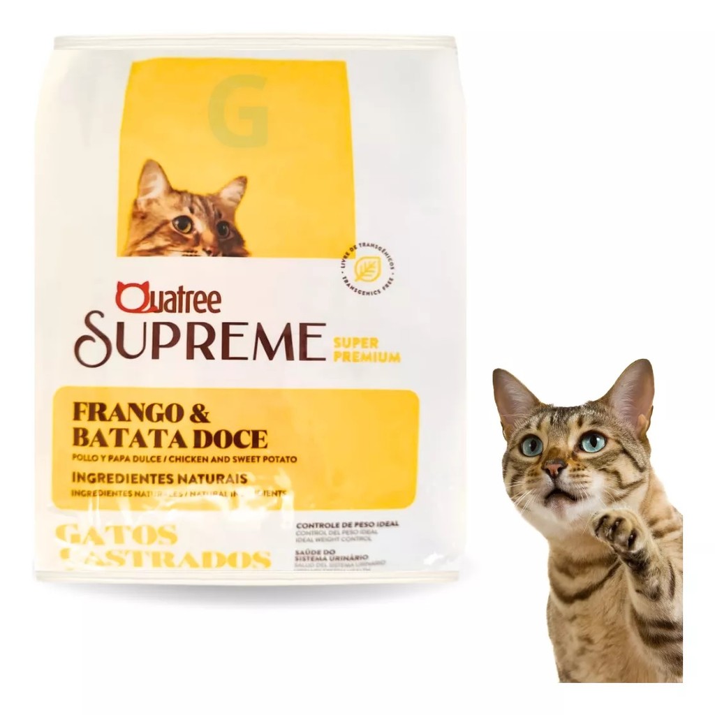 Kit C/ 5 Ração Quatree Supreme Gatos Castrados Frango 1Kg