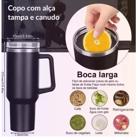 Térmico Copo Stanl Inox Alça Flip com canudo 1200ml