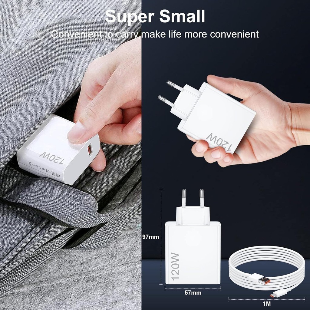 Kit Carregador 120W Para Xiaomi Com 6A USB C Cabo Fast Turbo Charge 67w 168w