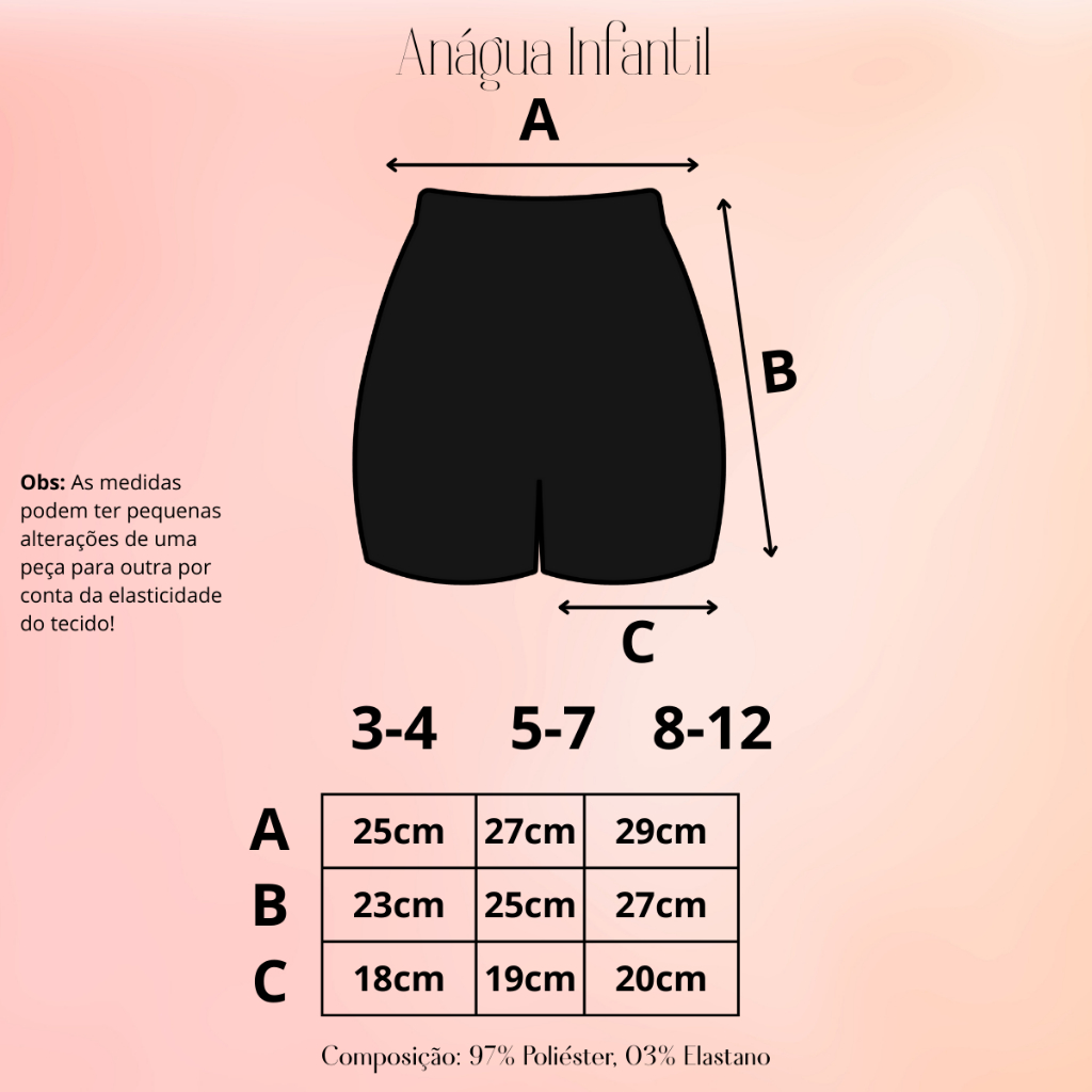 Kit 5 Short Anágua Infantil Confortável Moda Menina Moça De 3 a 12 Anos