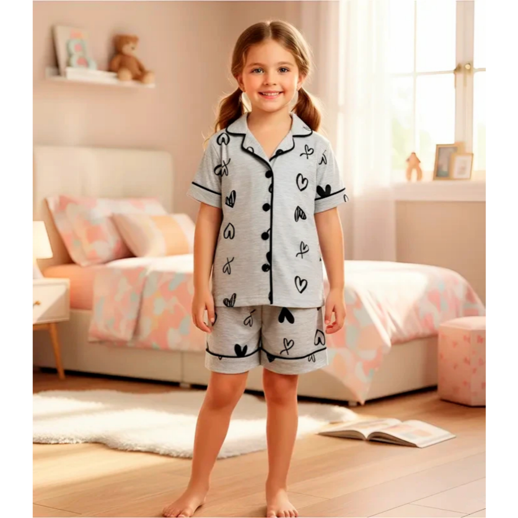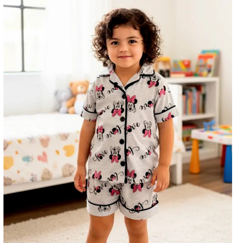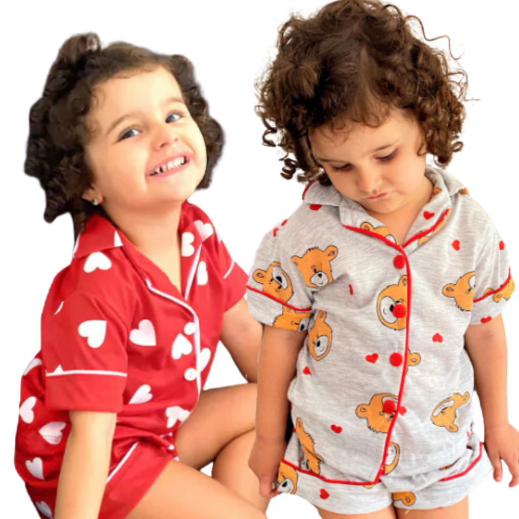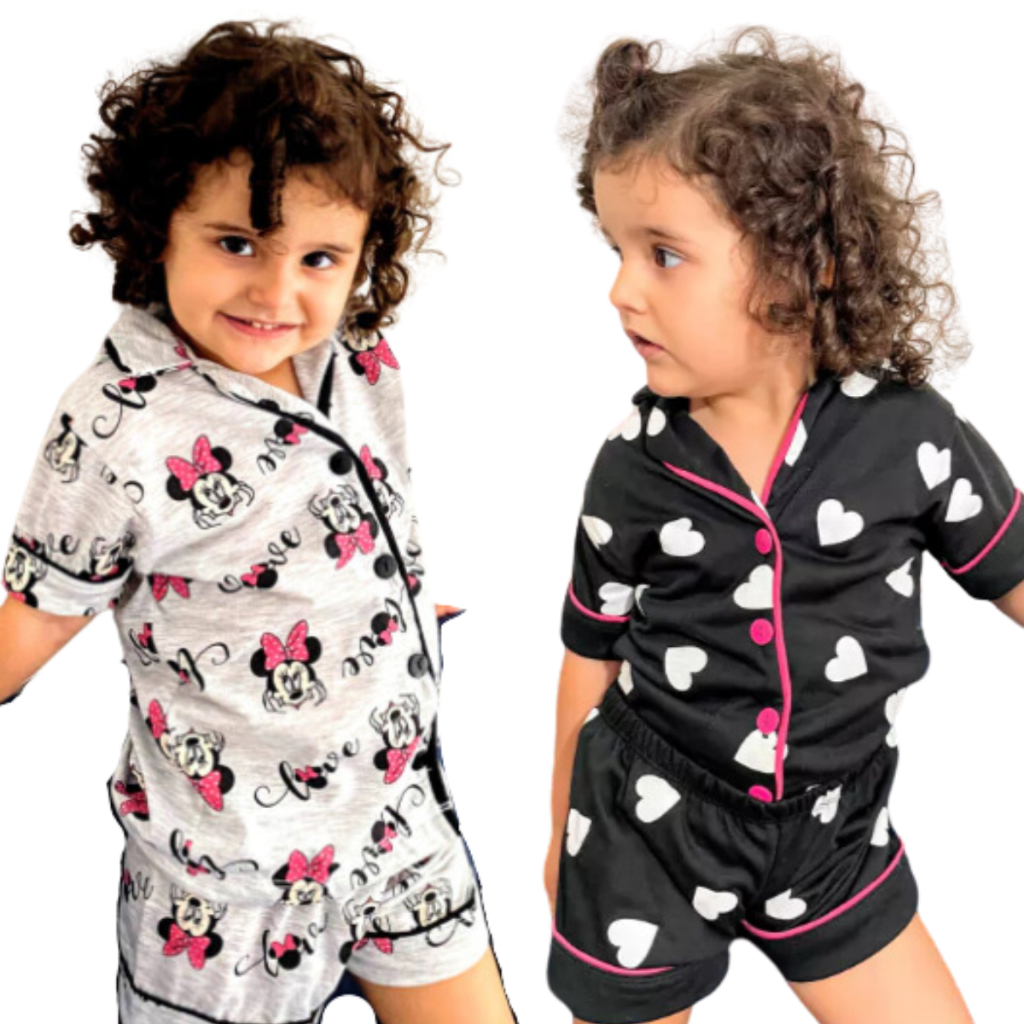 Kit 2 Pijamas Americano Infantil Menina Criança Blusa Short Blogueira Botões Curto Verão Confortável