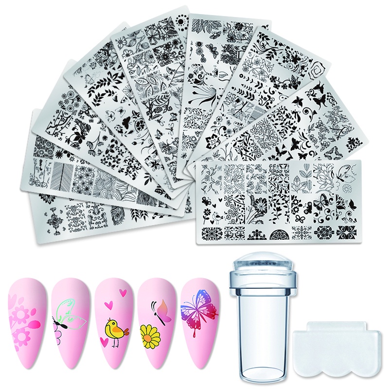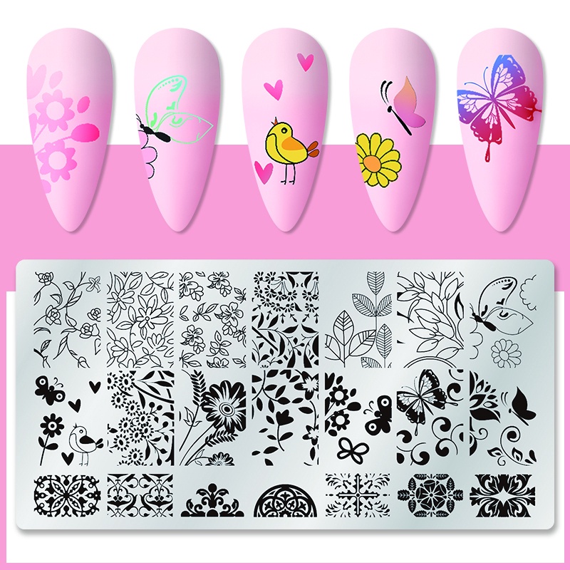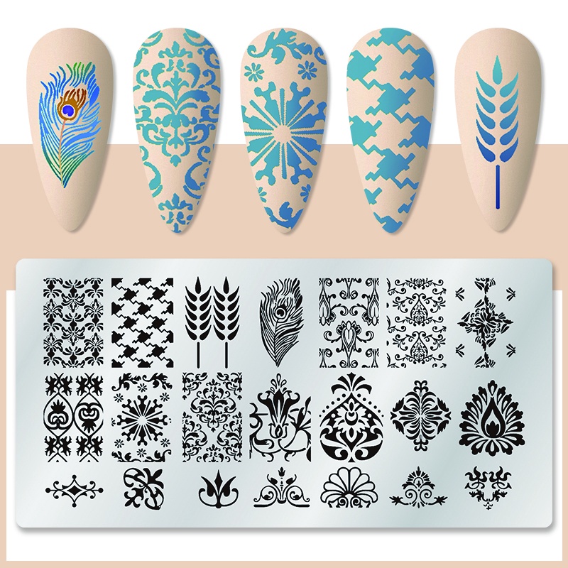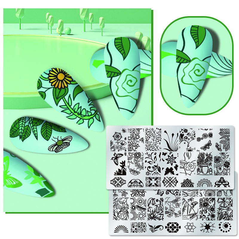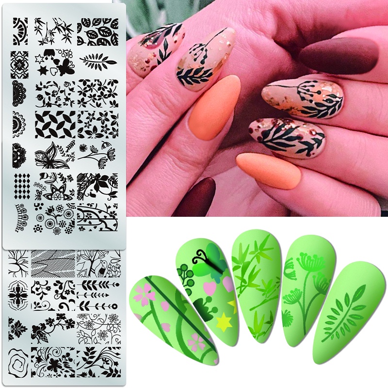 Retângulo Placas De Carimbo De Unhas Placa Flor Folhas Padrão Modelo Figuras Design Do Prego Imagem