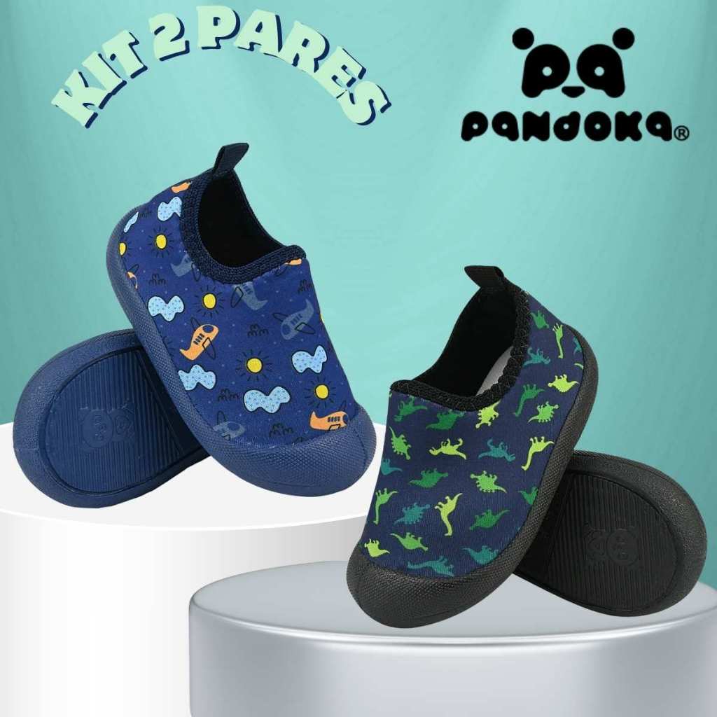 Kit 2 Pares Tênis Calce Fácil Infantil Menino Confortável Leve Macio Dia a Dia Escolar