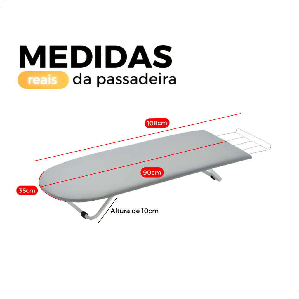 Passadeira Taboa Mesa De Passar Portátil Roupa Em Aço Carbono Extra Forte Com Porta Ferro Reforçada
