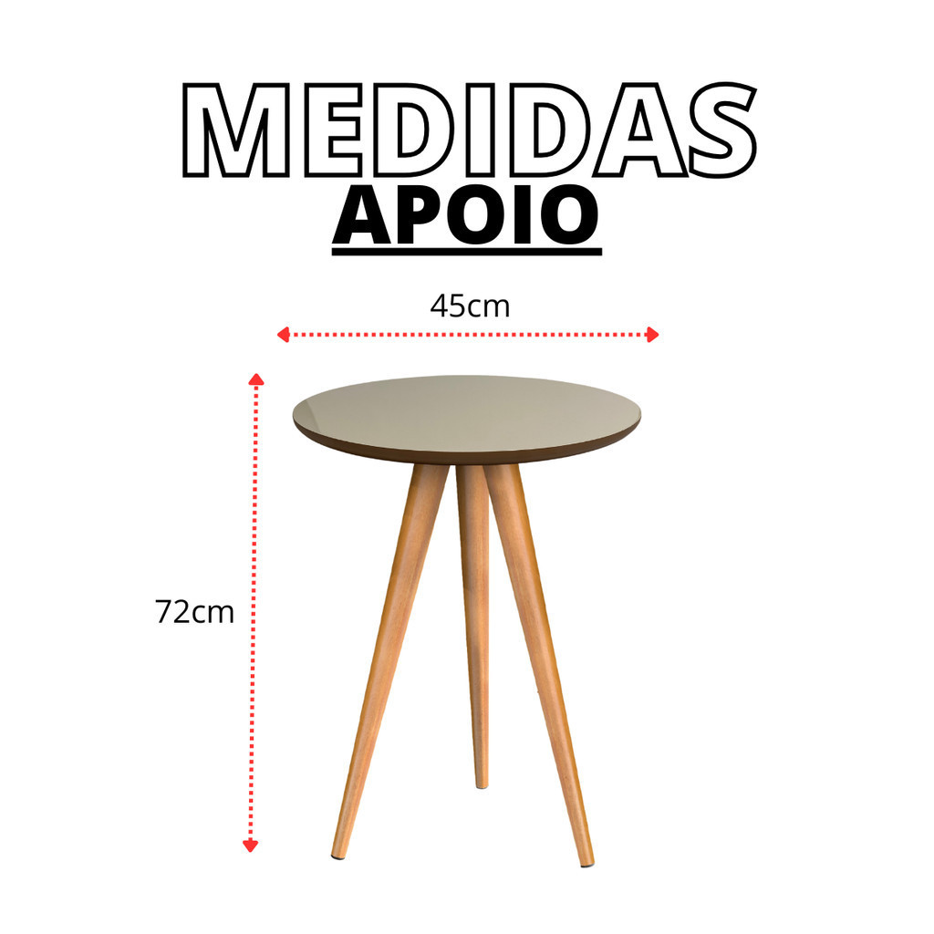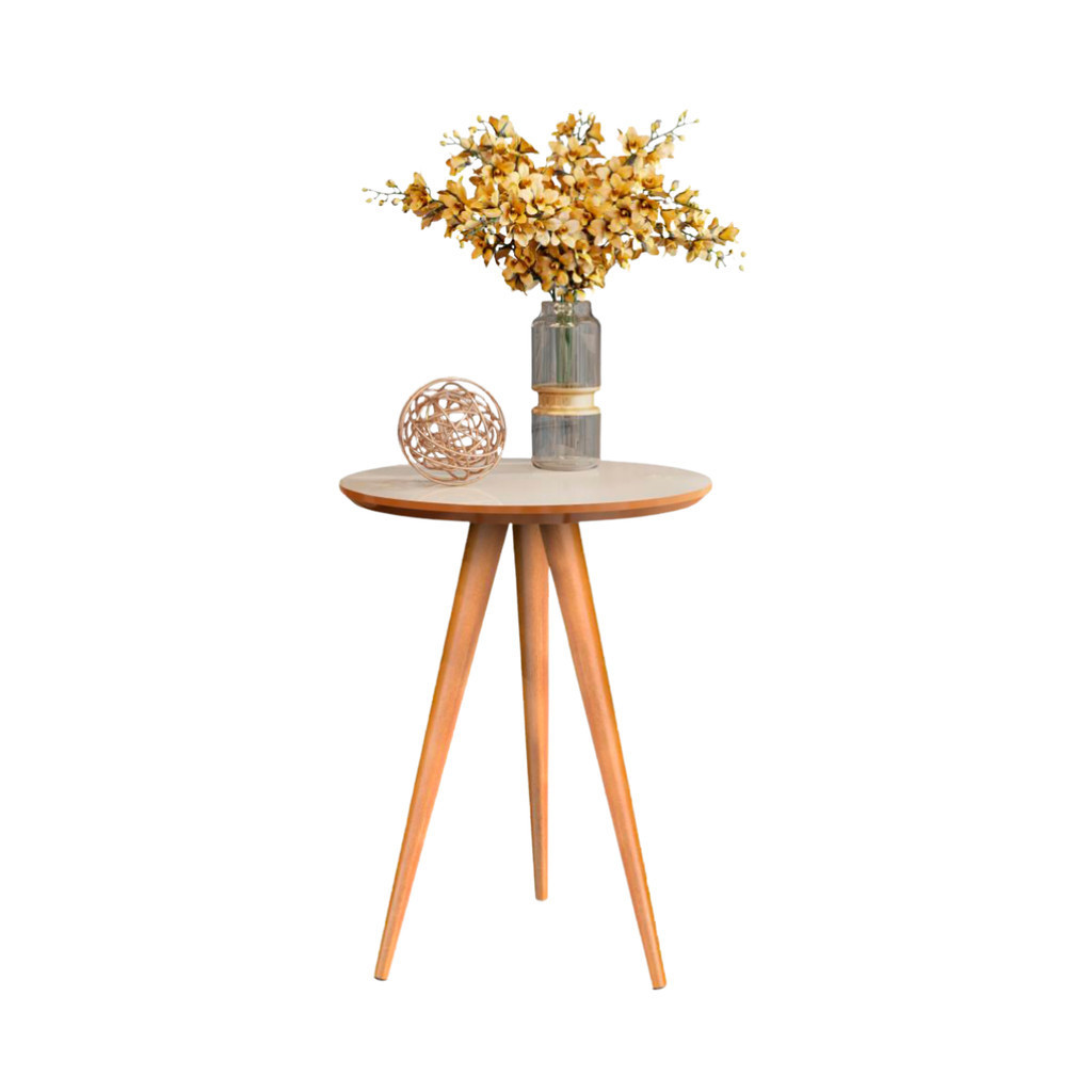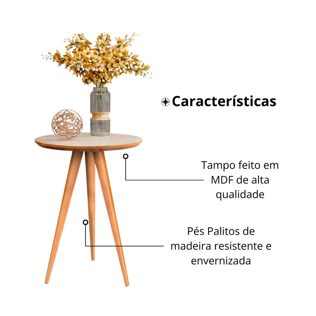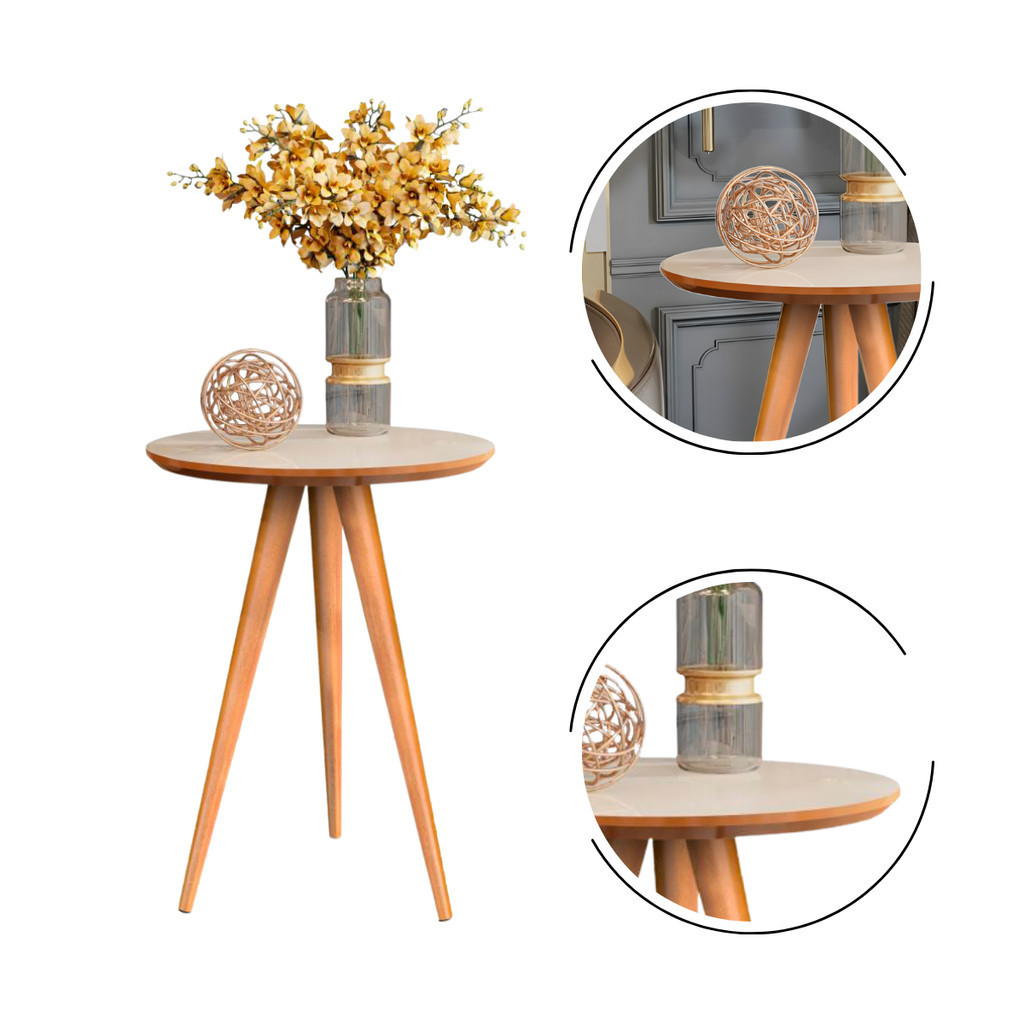 Mesa Lateral Redonda 70cm Retrô Vintage Com Pés Palito Decoração Quarto Sala Cor Off-White/Freijó