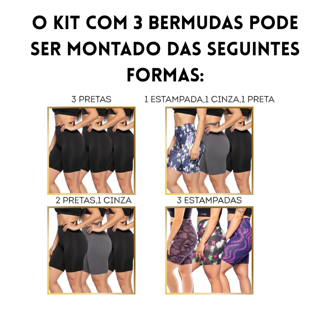 kit c/3Bermudas feminina,confortável,estilo,treino,yoga,corrida,atividade física bermuda ,academia.