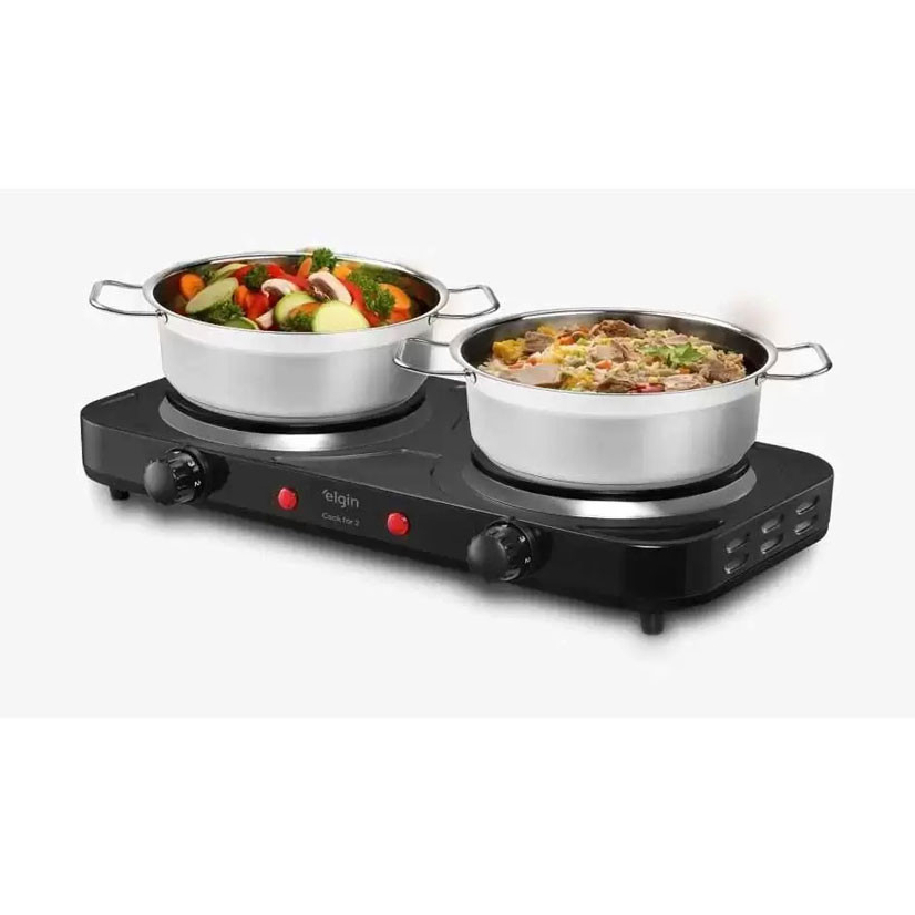 Fogão Elétrico Portátil FOG10 Cooktop 2 Bocas Cook For 2 Preto 220v Elgin