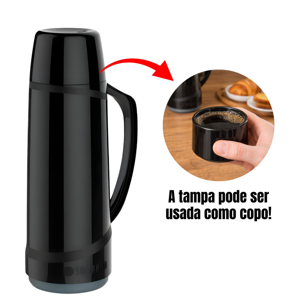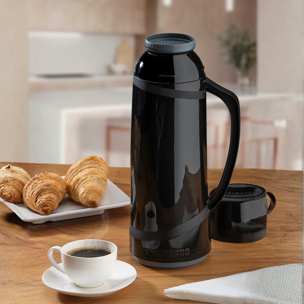 Garrafa Térmica Cristal 1 Litro Preta Soprano