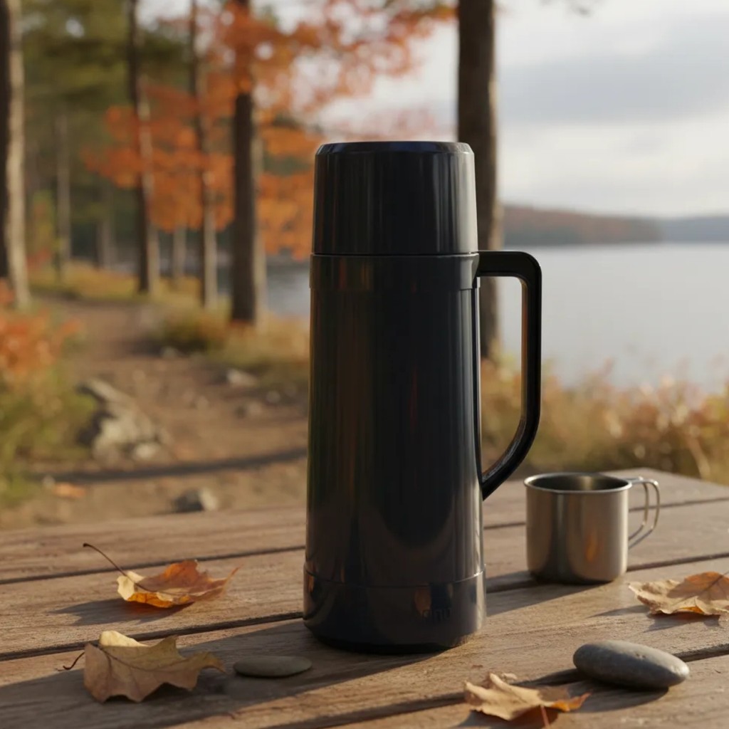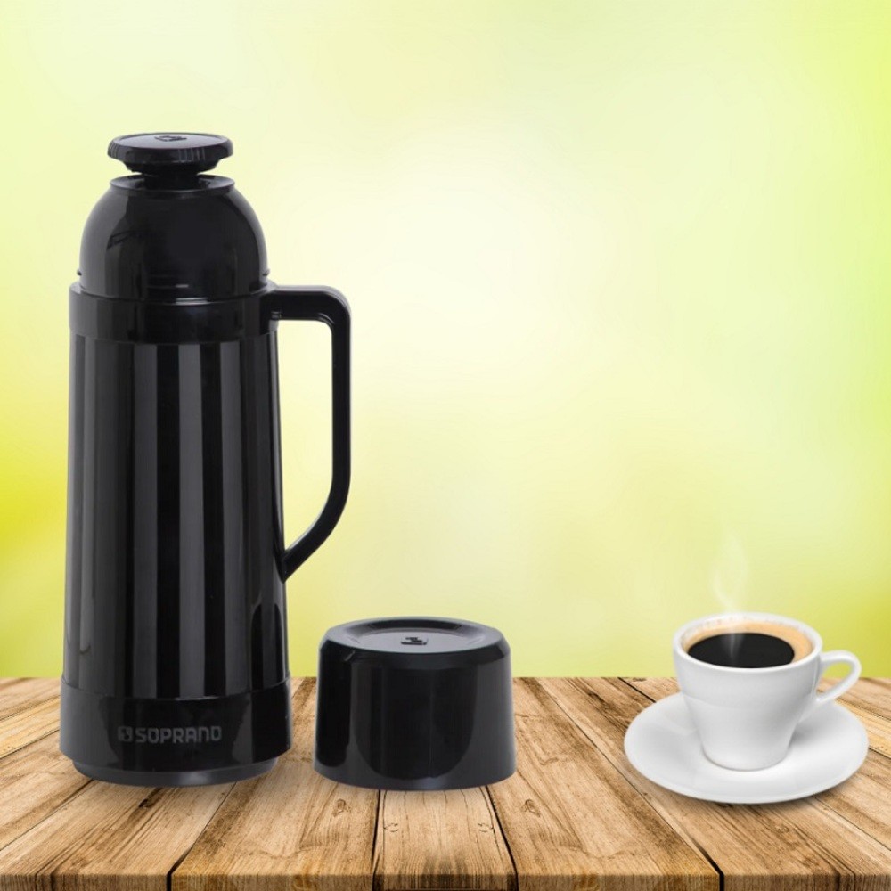 Garrafa Térmica Topázio Preta 1L C/ Ampola De Vidro Design Ergonômico Prático Versátil
