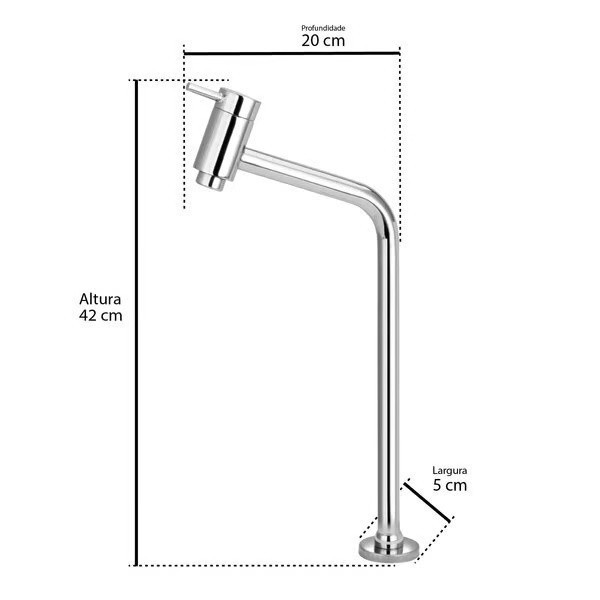 Torneira Pia para Cuba ou lavatorio Cozinha alta Cromada Link 42 cm 45° mesa Metal 1/4 de Volta