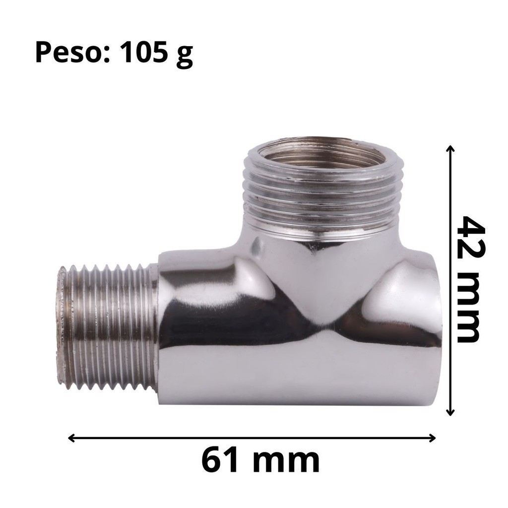 Adaptador T Para Torneira Tanque Maquina Lavar Roupas Louca Cromado 1/2