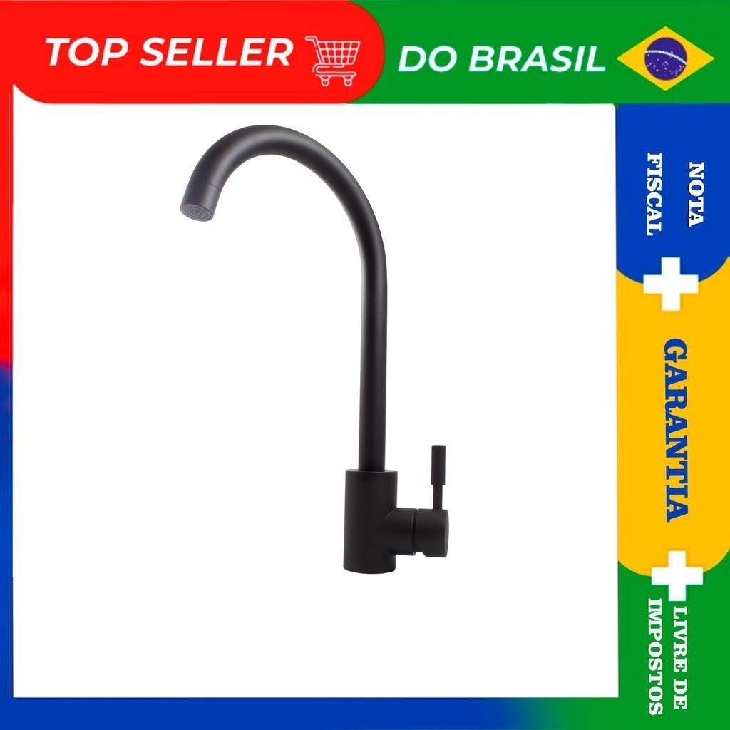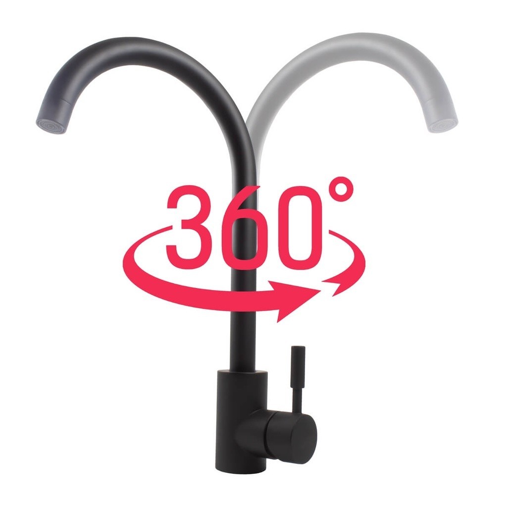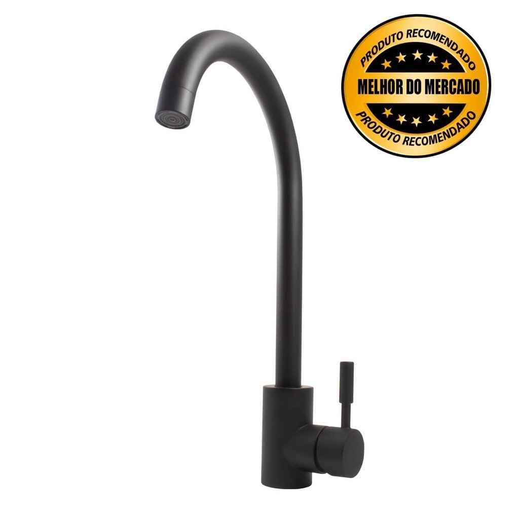 Torneira Misturador Monocomando Cozinha Preta Bica Movel 360° Redonda