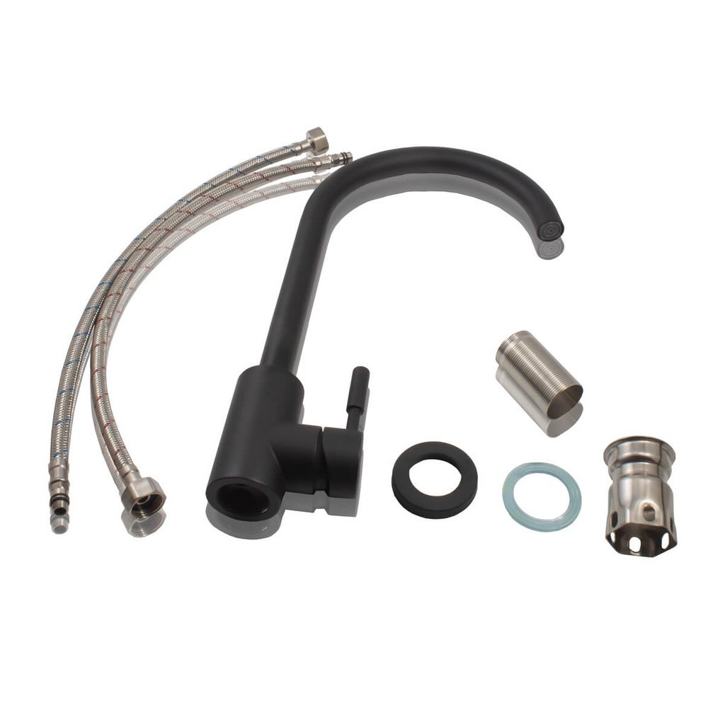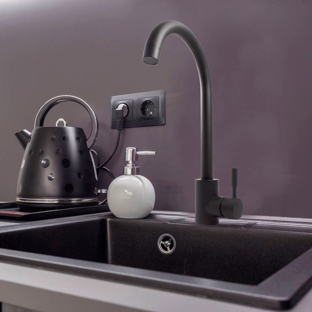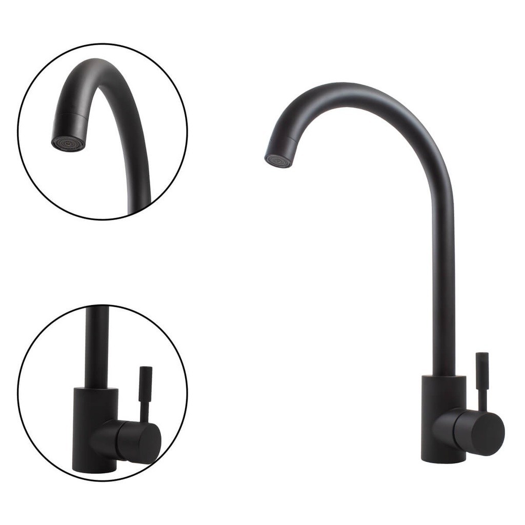 Torneira Misturador Monocomando Cozinha Preta Bica Movel 360° Redonda