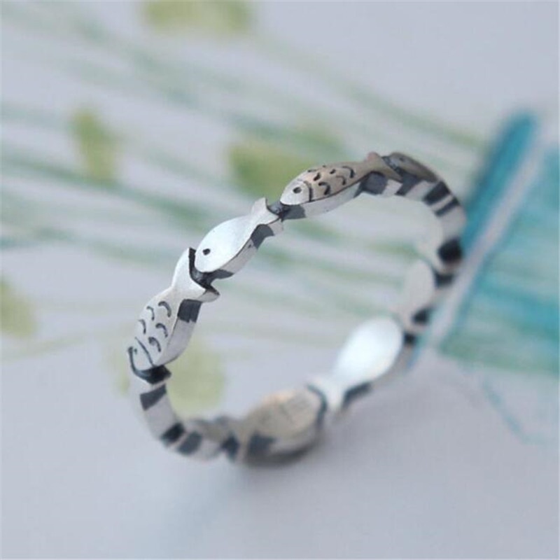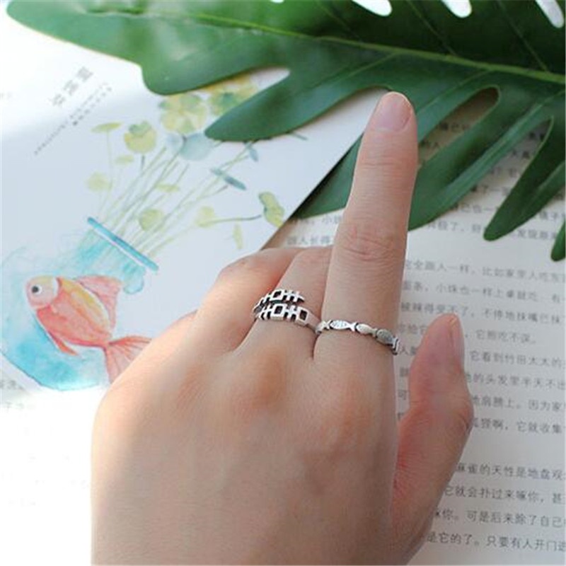 Anel De Prata Esterlina 925 Versão Coreana Retro Camada Única Pequeno Peixe Exclusivo Fêmea R042