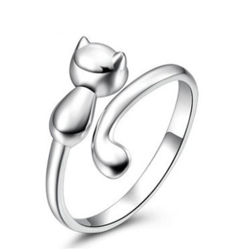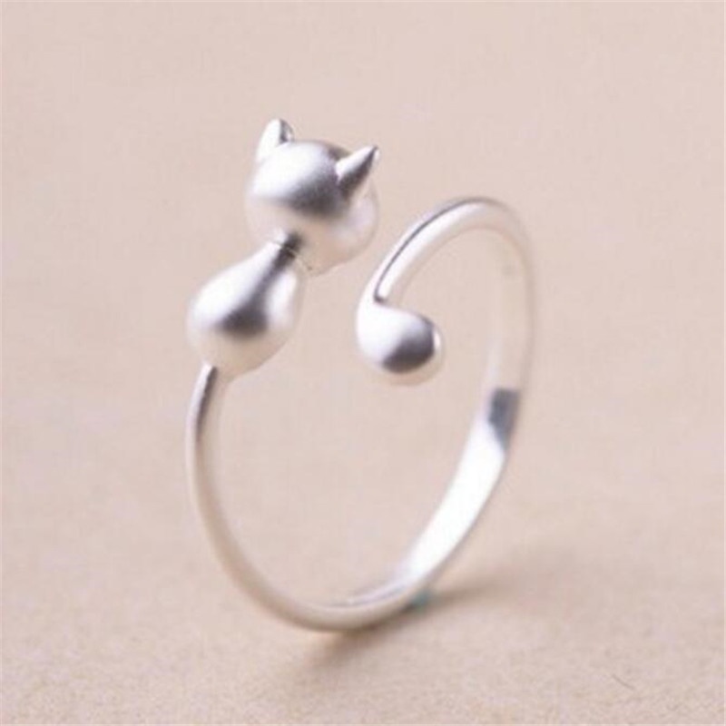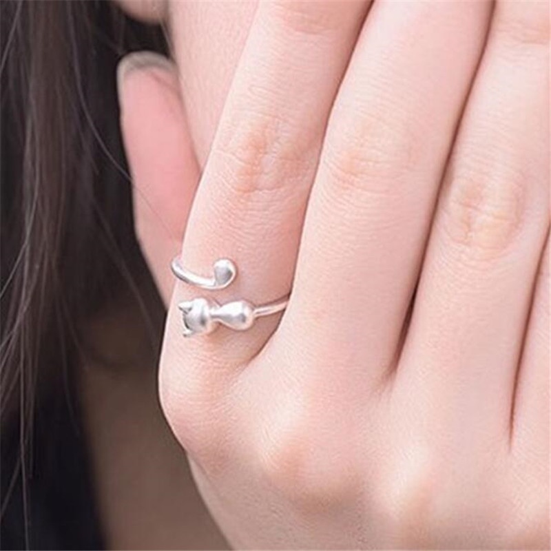 Versão Coreana Personalidade Moda Gato Estético Pequeno Fresco 925 Sterling Silver Acessórios De Anel Aberto R054