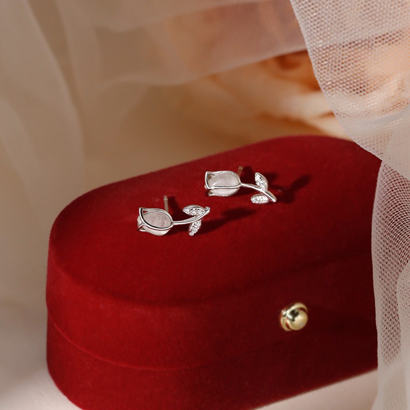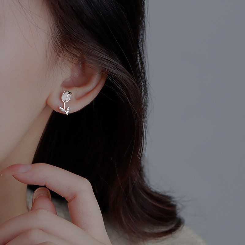 925 Prata Esterlina Moda Prata Elegante Tulipa Flor Feminina Brincos LE070