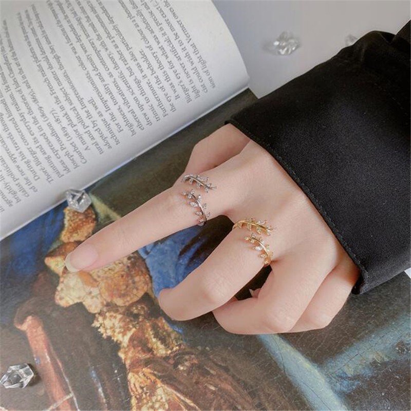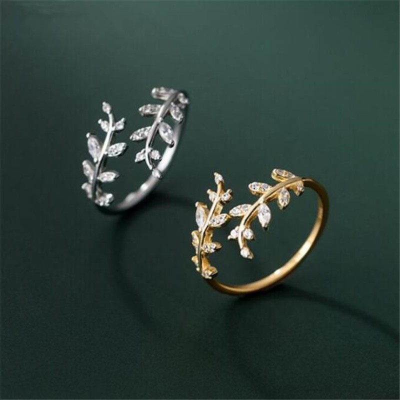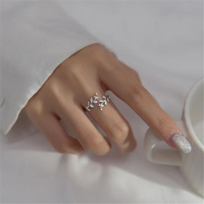 Anel Feminino Aberto Estilo Fashionable Unique 925 Sterling Silver Ring Pequeno Anel de Folha de Diamante Fresco Aberto Anel Feminino Estilo Fashionable Cool Style Simples Ajustável Jóias de Mão CR126