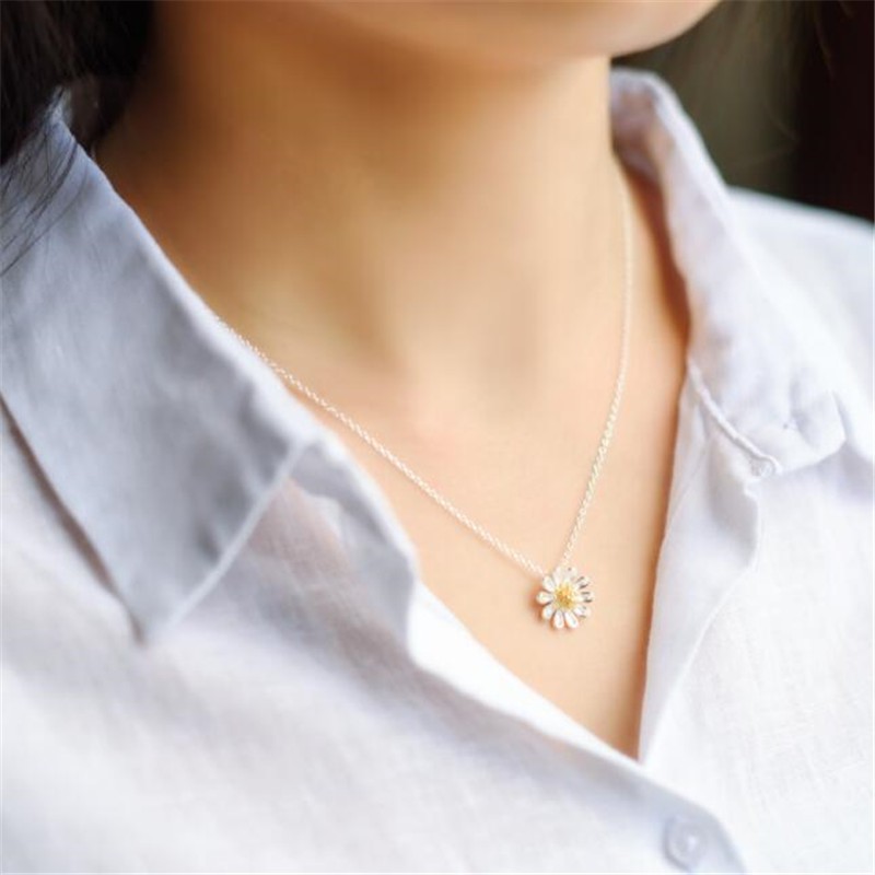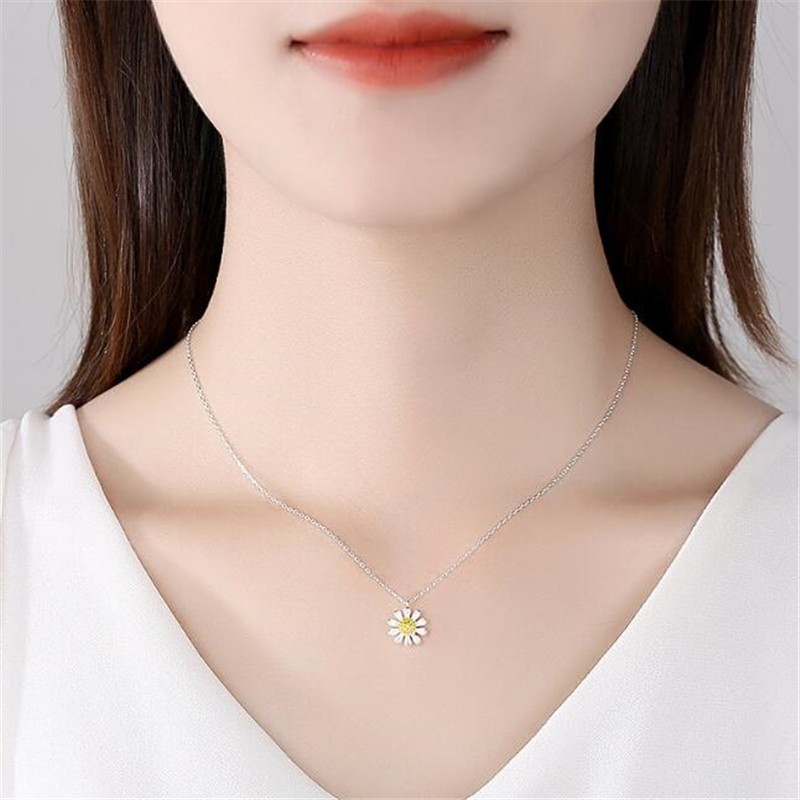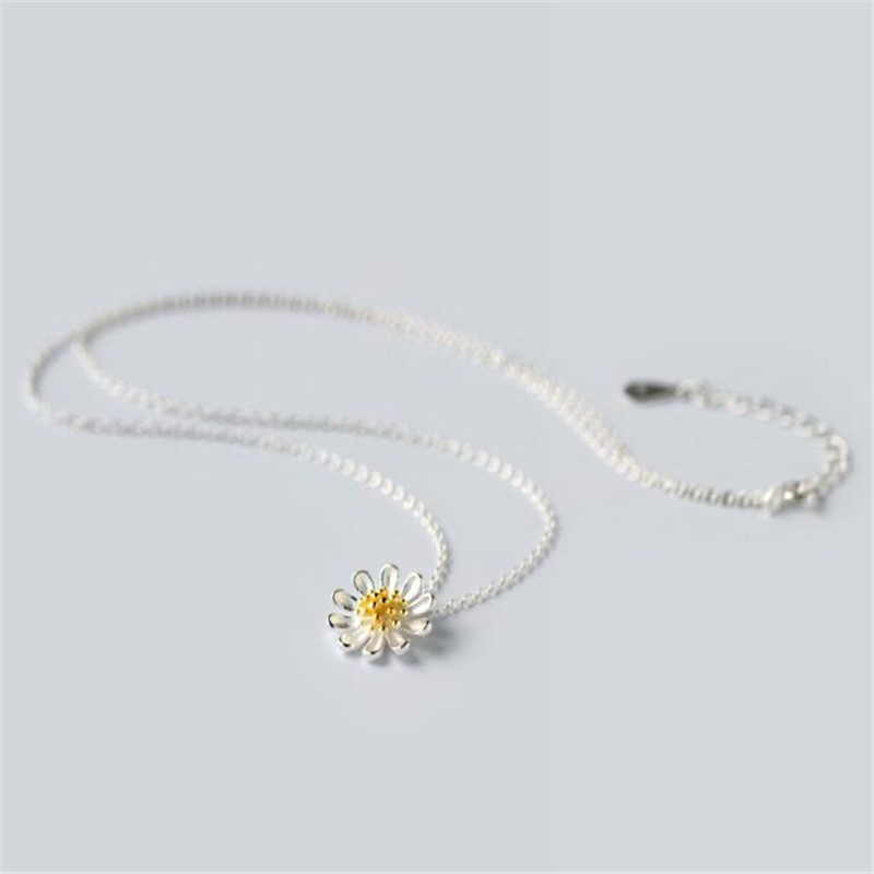 925 Colar de Prata Sterling Colar de Prata Moda Pequena Flor de Sol Fresca Daisy Flower Fresh Autumn Chrysanthemum Colar de Flores Feminino Simples Fofo Pingente de Jóias Mori Estilo Estudante Casal de Estudantes CN046