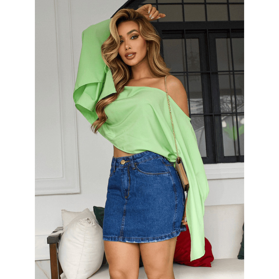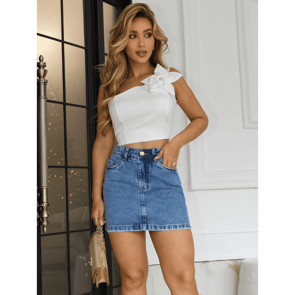 Mini saia jeans feminino 100% algodão, Cintura Alta - Look Casual Estiloso para o Dia a Dia