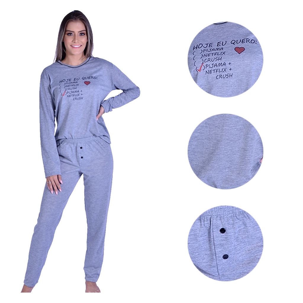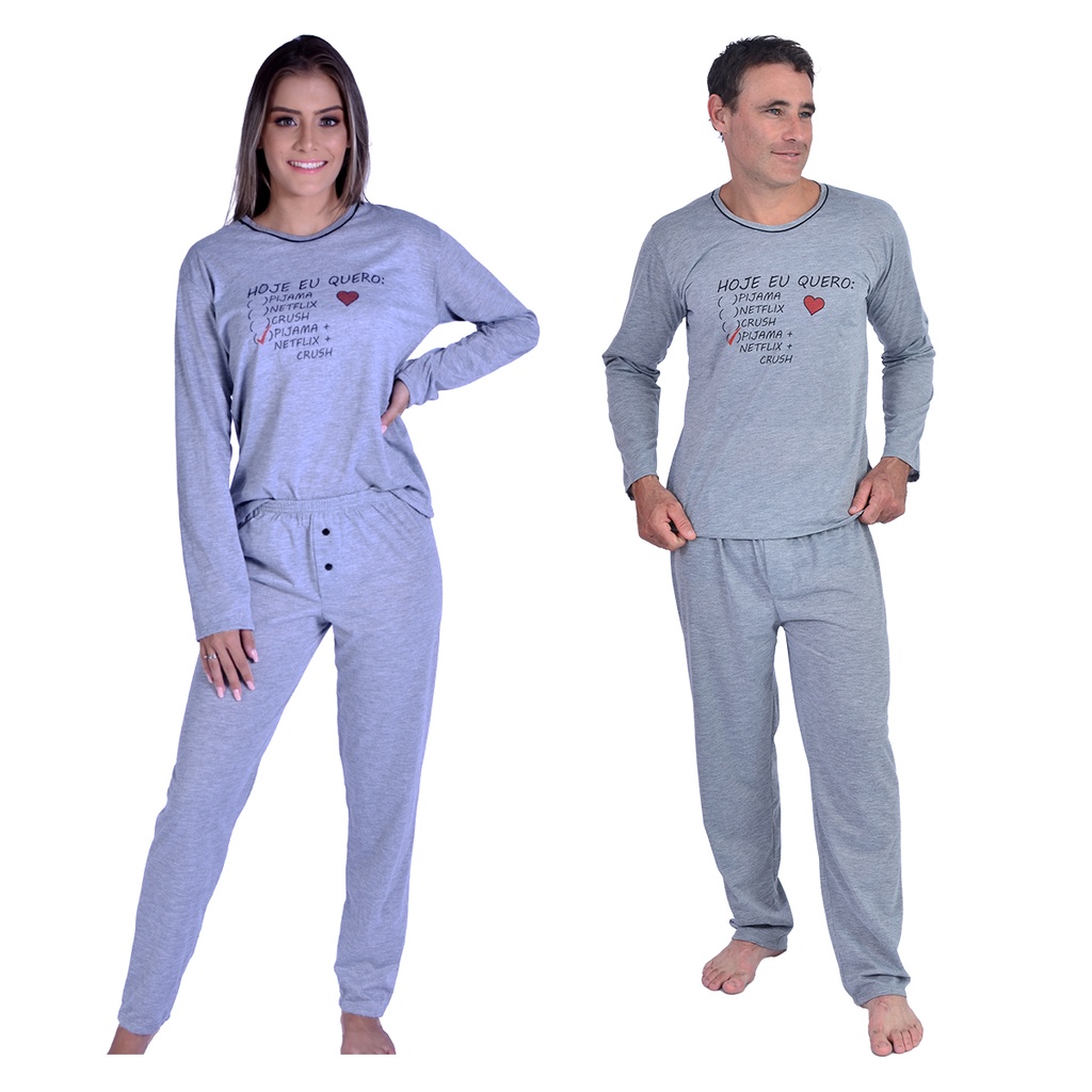 Kit Pijama Casal Feminino e Masculino Longo Namorados Crush Inverno
