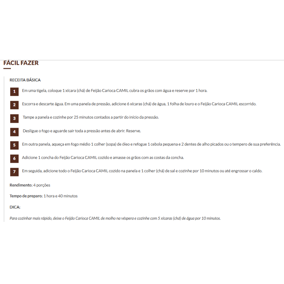 Feijão Carioca Camil 1 Kg - Kit Com 10 Unidades