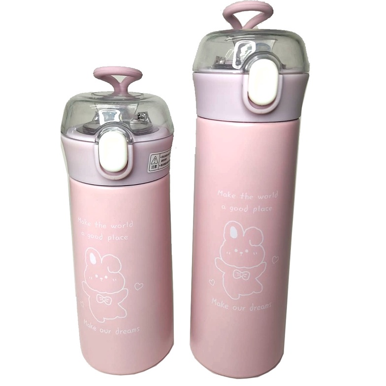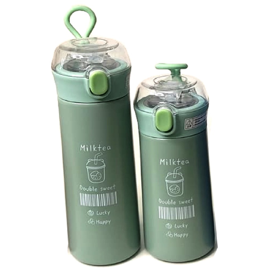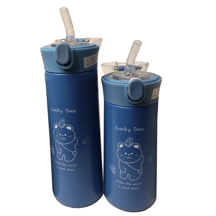 Garrafa Térmica Com Canudo Estampa e Frase Aço Inox 350ml ou 500ml