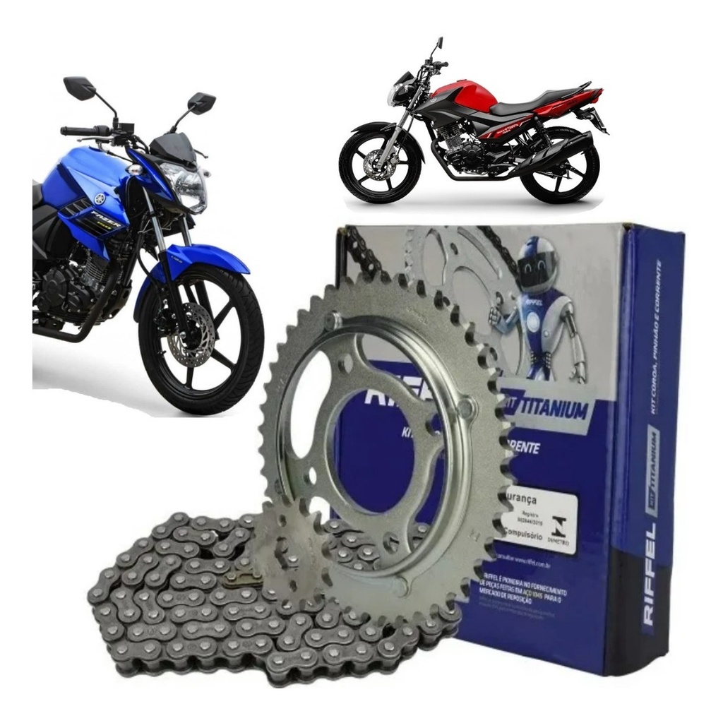 Kit Relação Tração Transmissão Ybr 125 Fazer Factor 150 2014 à 2025 Sem Retentor Original Riffel