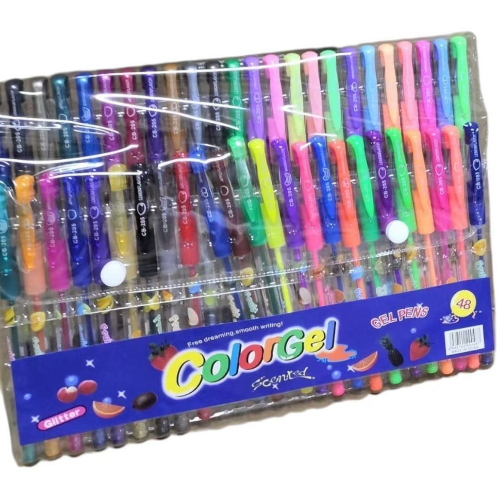 Conjunto com 24/36/48/60 Caneta Gel Canetinhas Coloridas Perfumadas Glitter