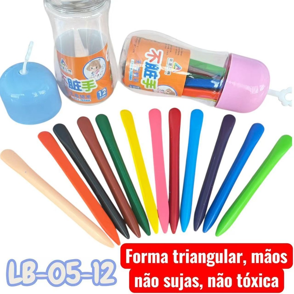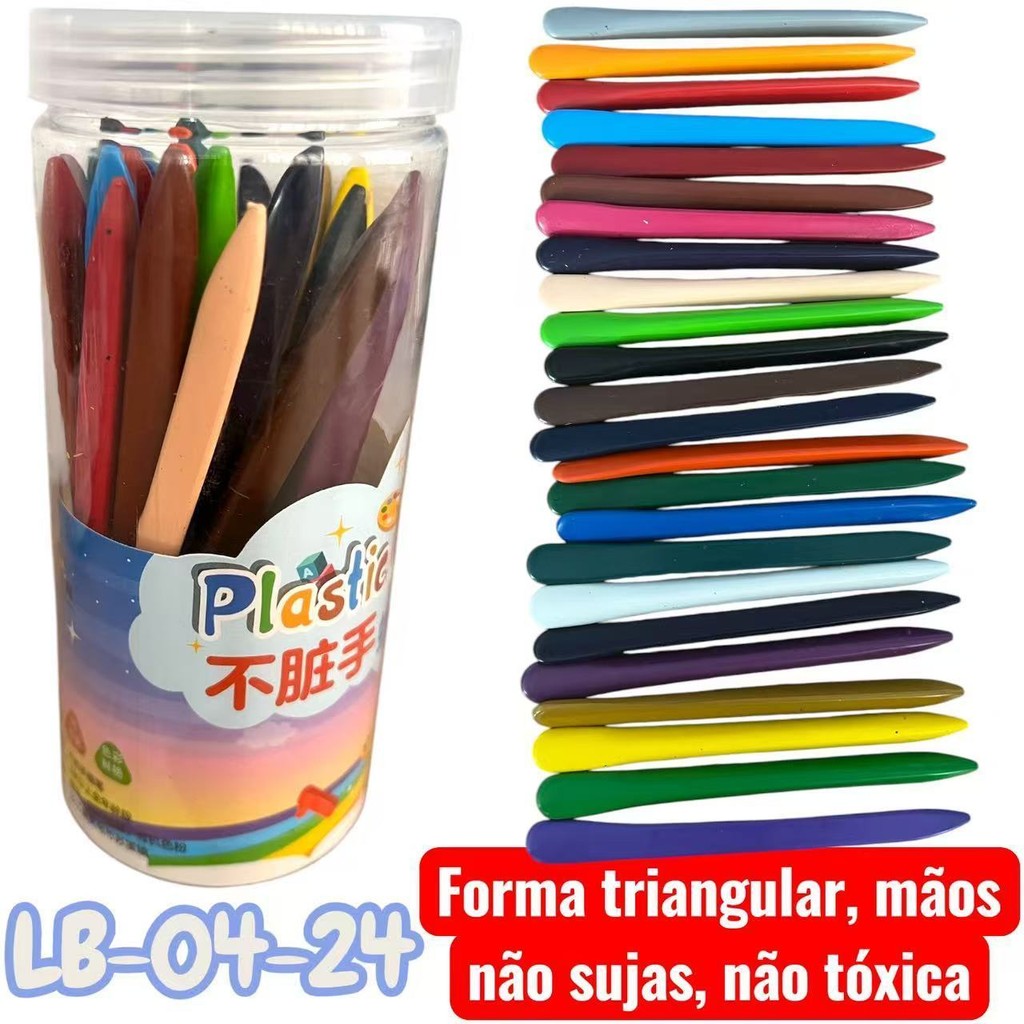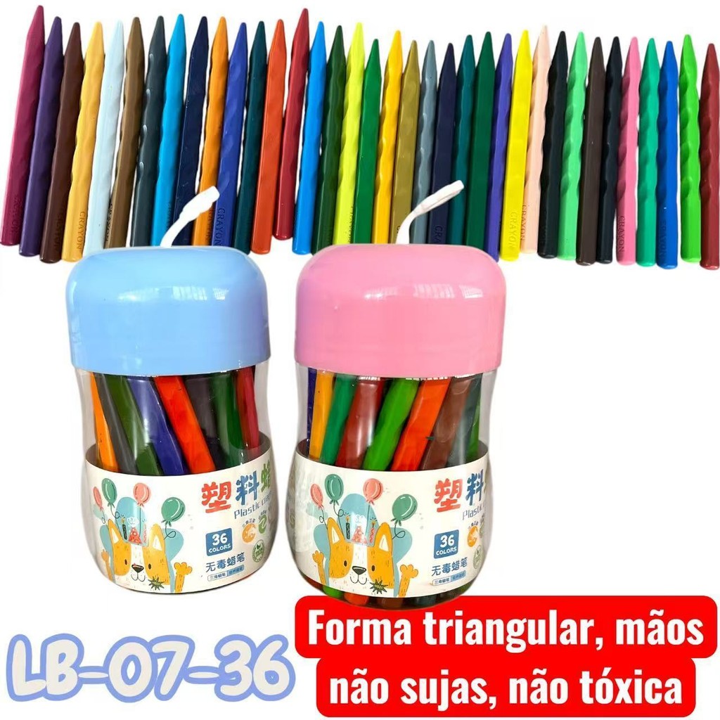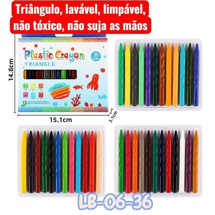 Giz de Cera Triangular Não Quebra Giz Plástico Nâo Suja Lápis 6/12/24/36 Cores Colorir Antiaderente, Durável E Lavável