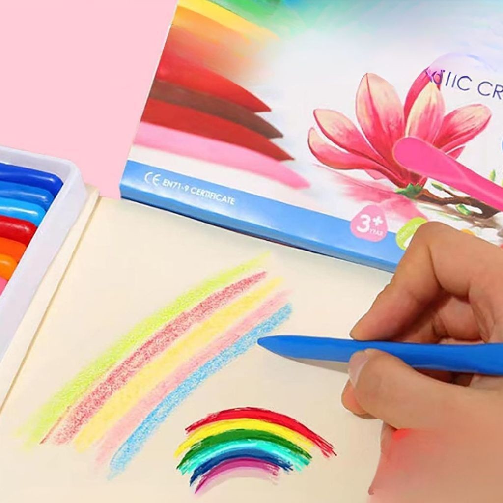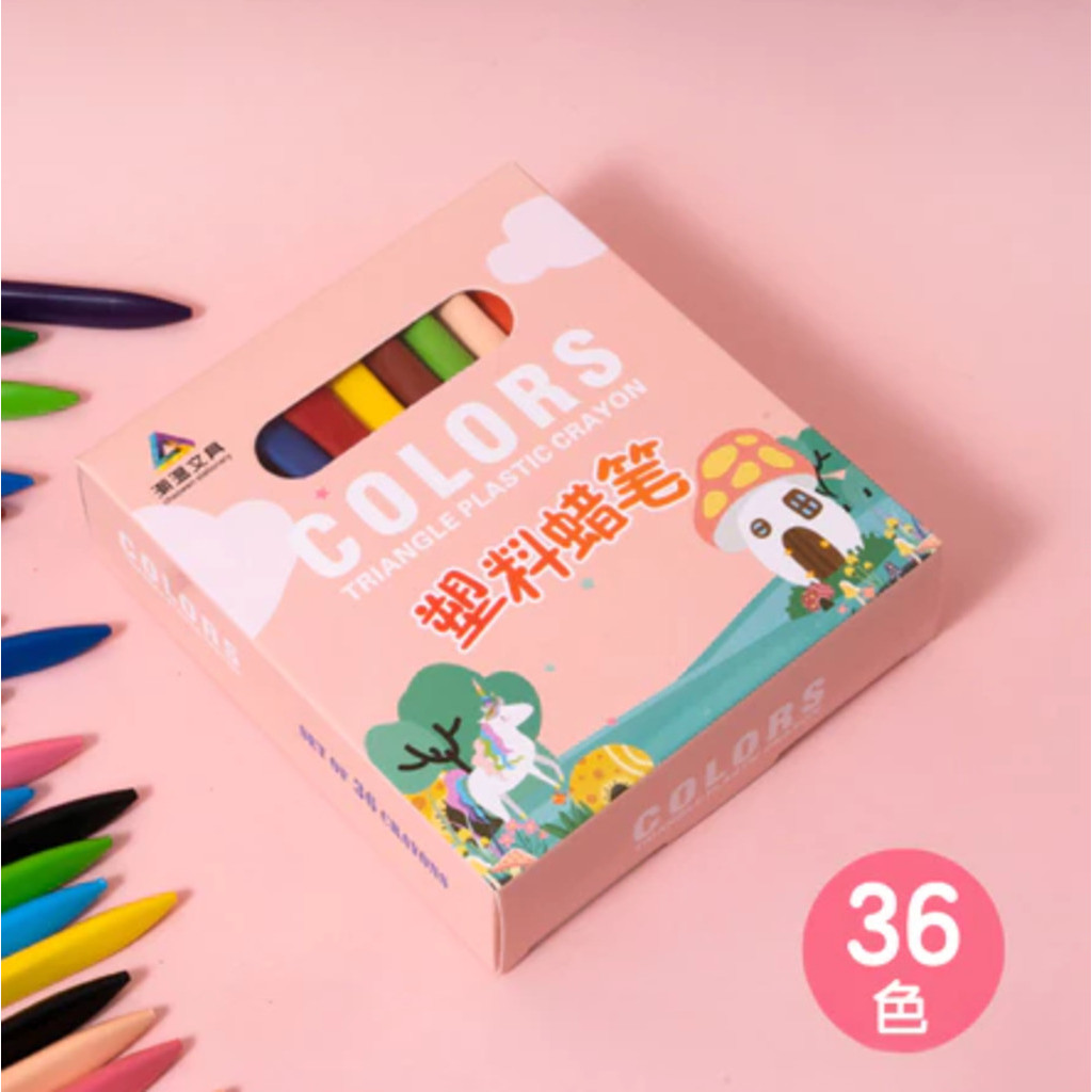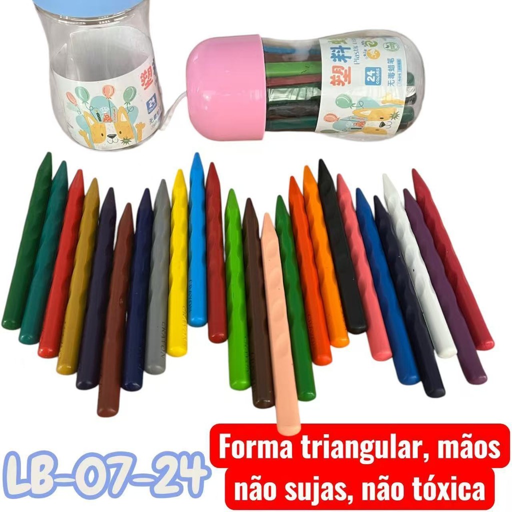 Giz de Cera Triangular Não Quebra Giz Plástico Nâo Suja Lápis 6/12/24/36 Cores Colorir Antiaderente, Durável E Lavável