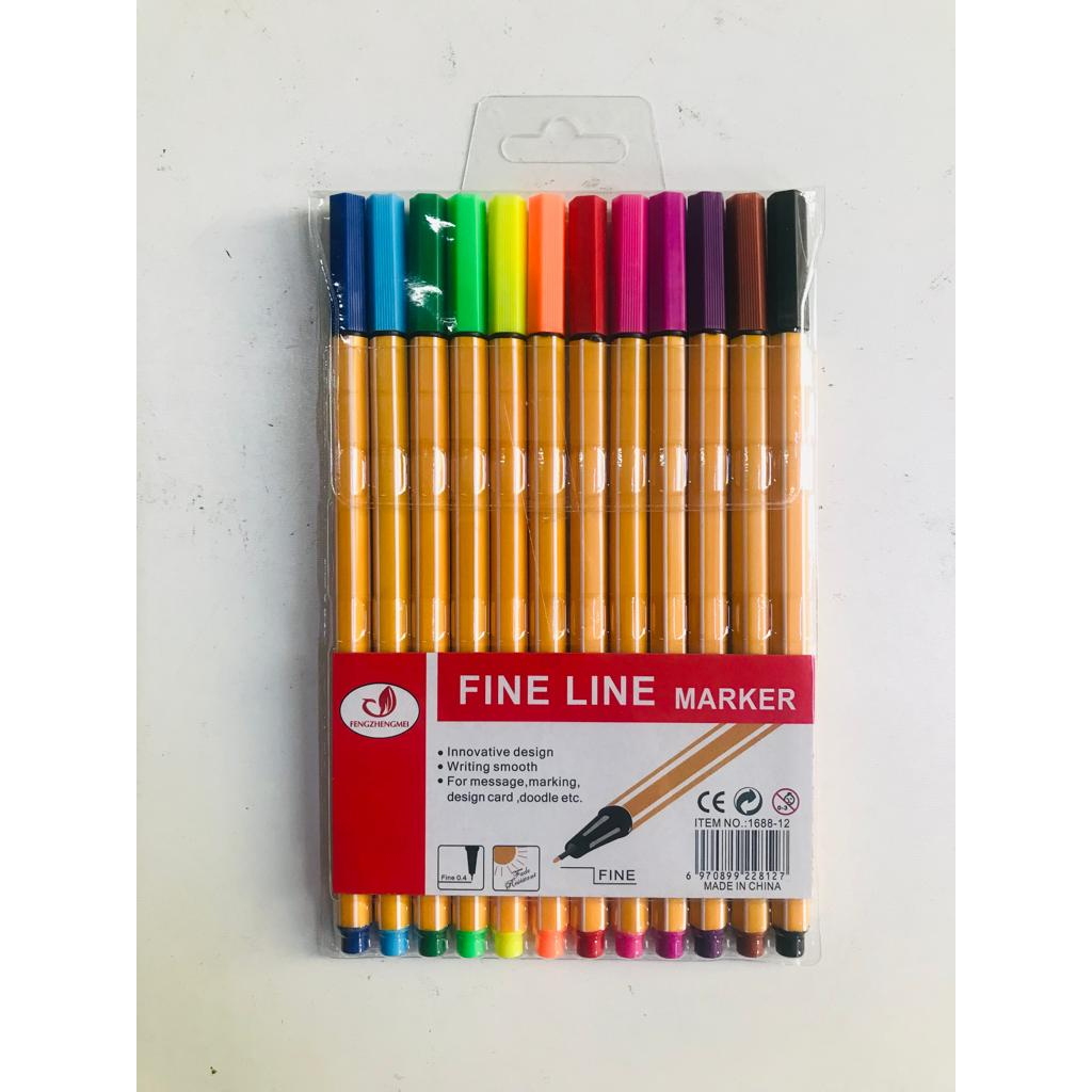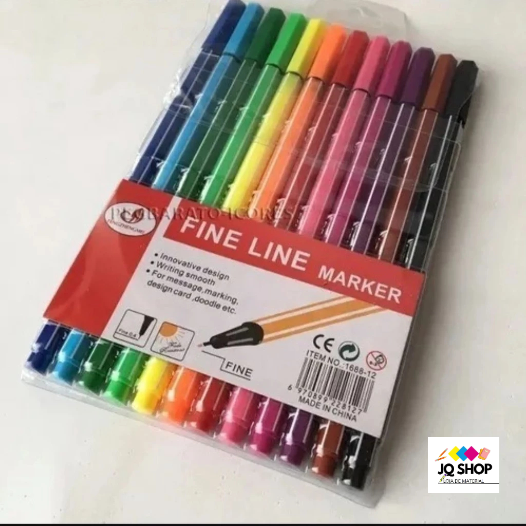 Kit com 12/24/36/48 canetas Fine Line Ponta Fina FINELINER 0,4MM