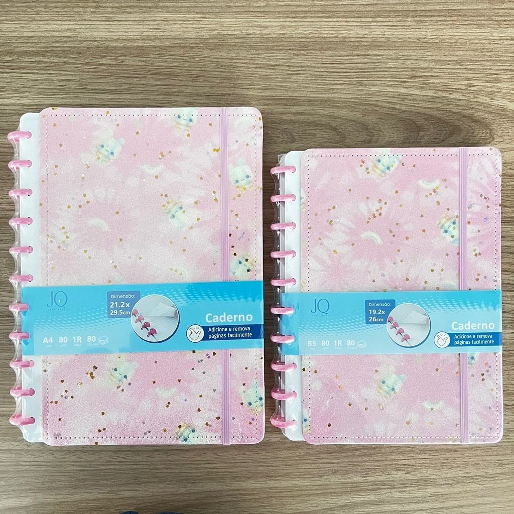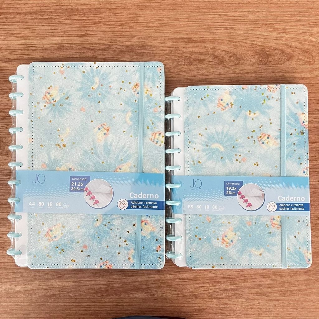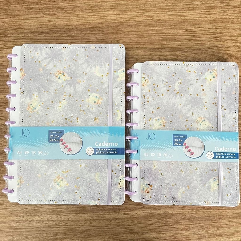 Caderno Inteligente Fofo A4 ou B5 Removíveis Brilho Azul Rosa Roxo Cinza