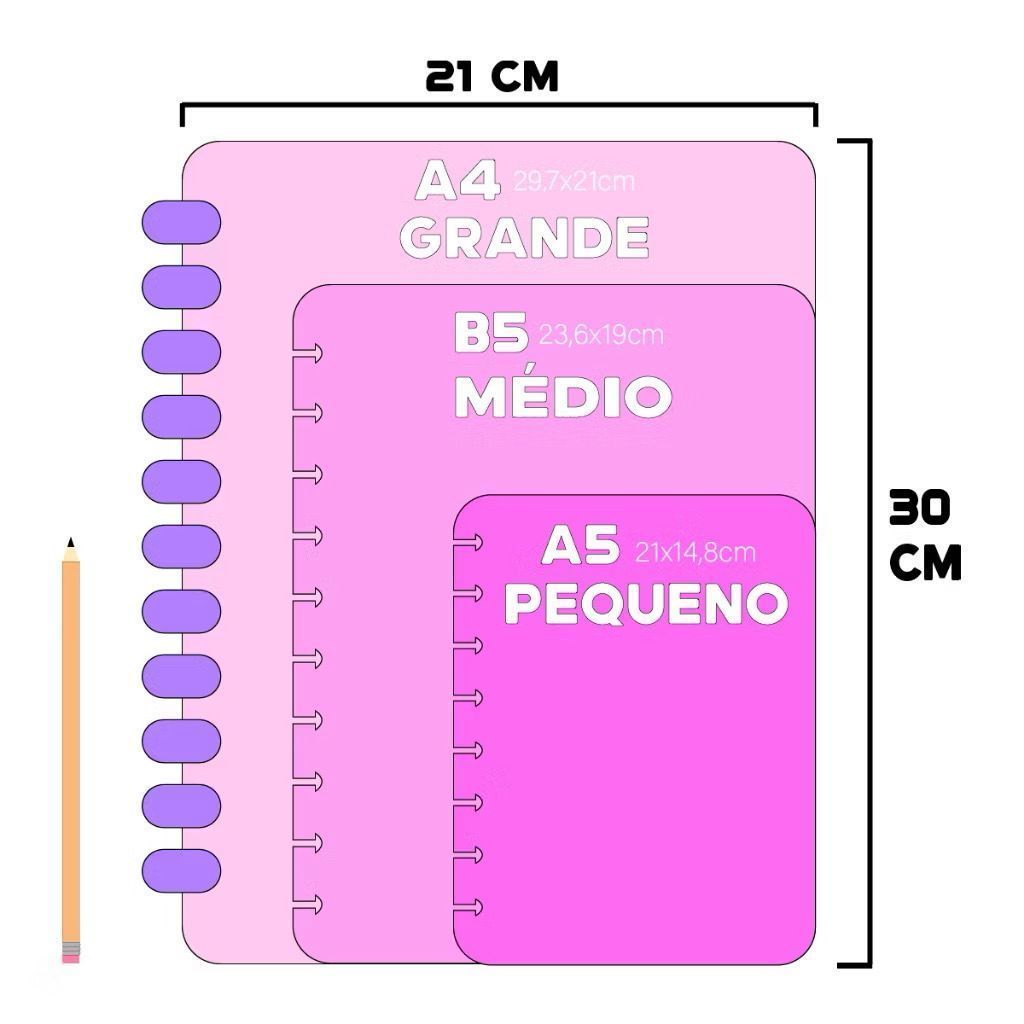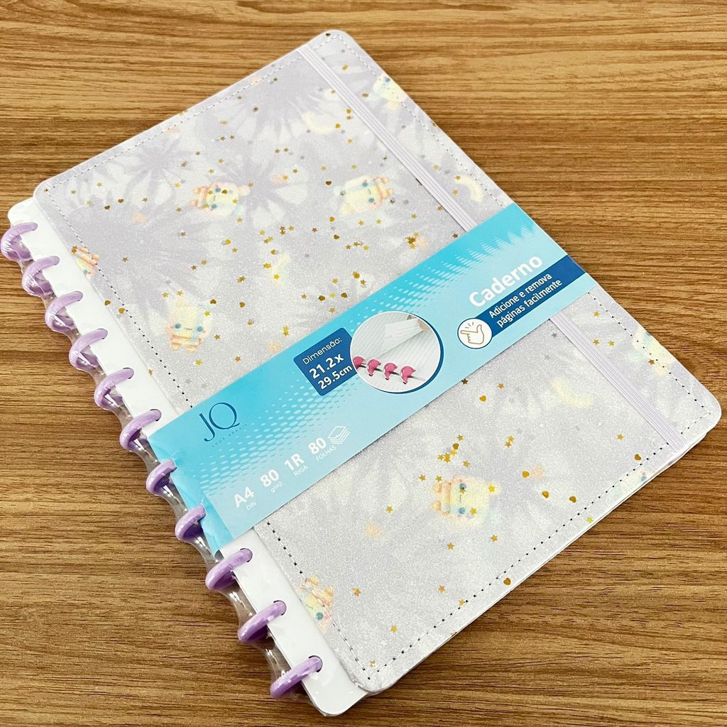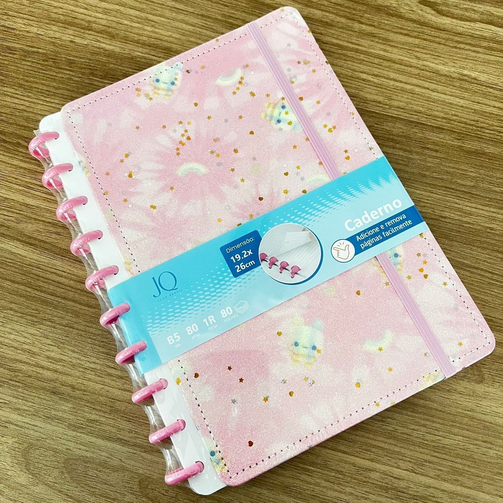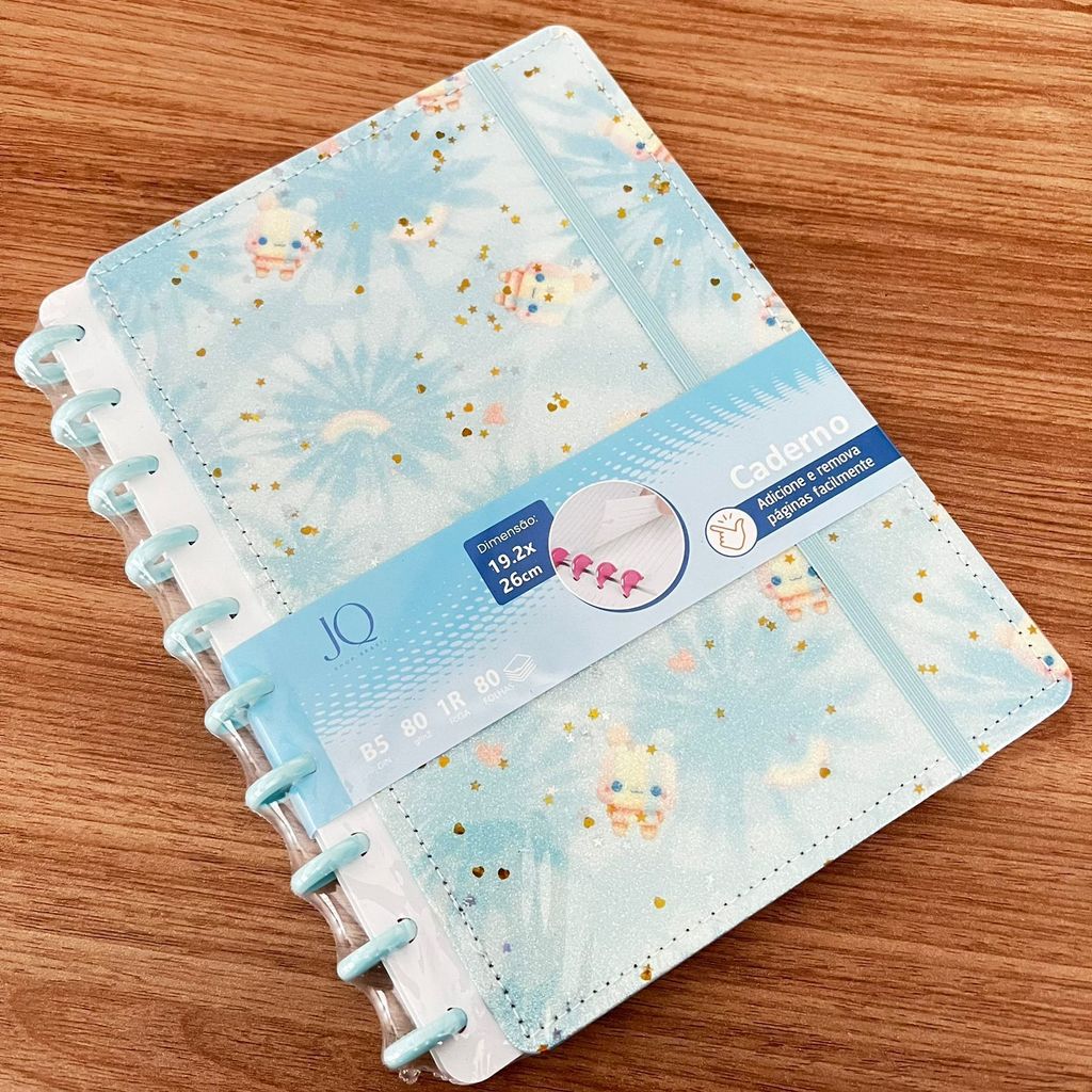 Caderno Inteligente Fofo A4 ou B5 Removíveis Brilho Azul Rosa Roxo Cinza