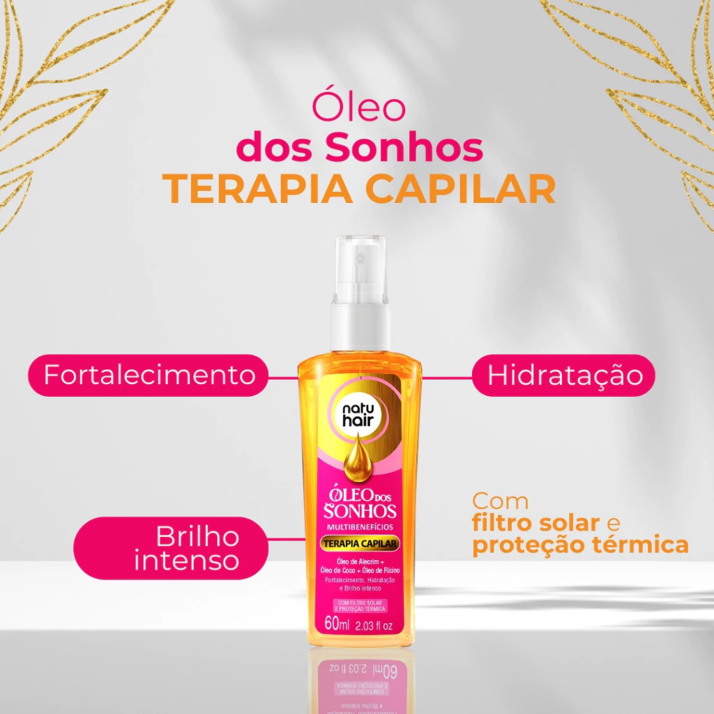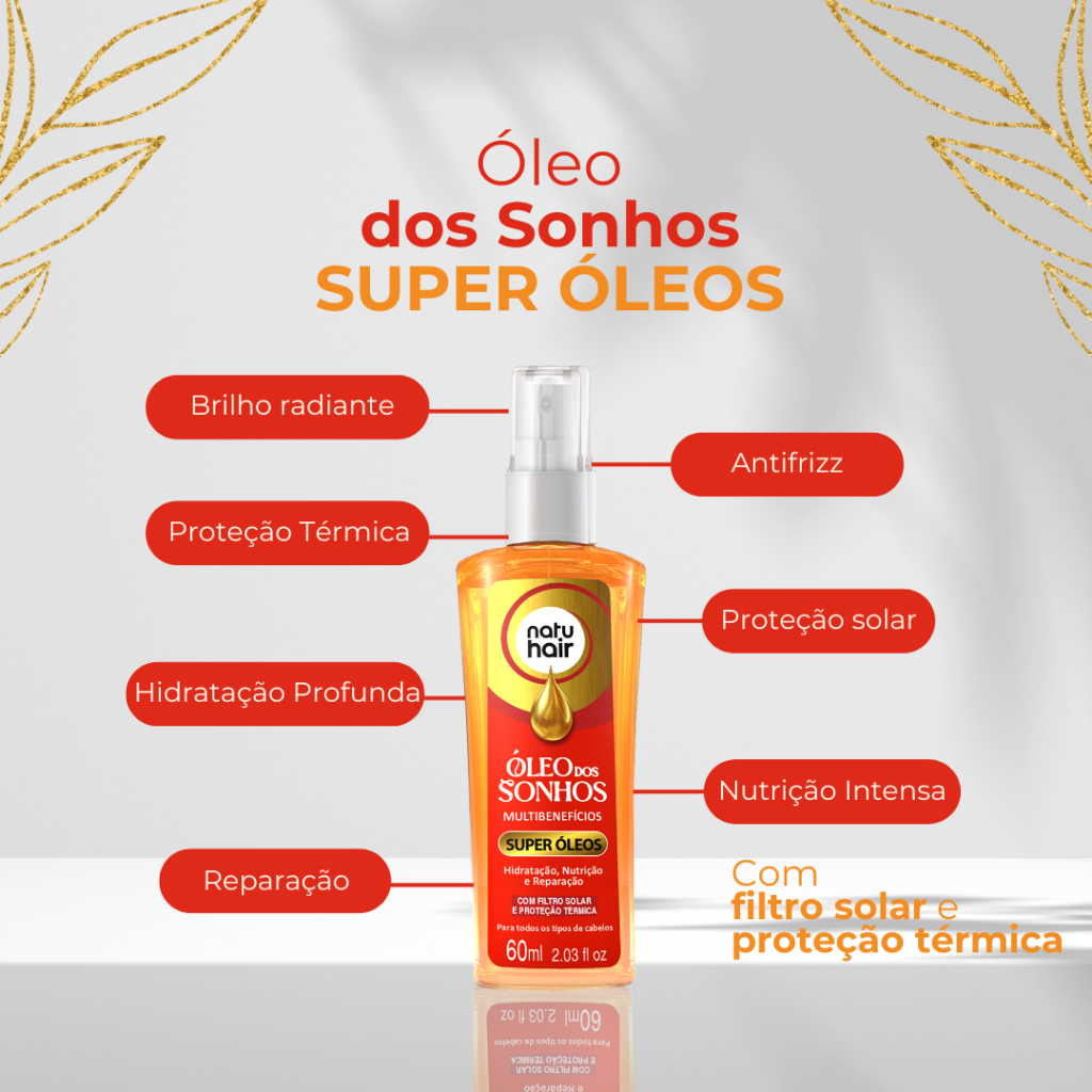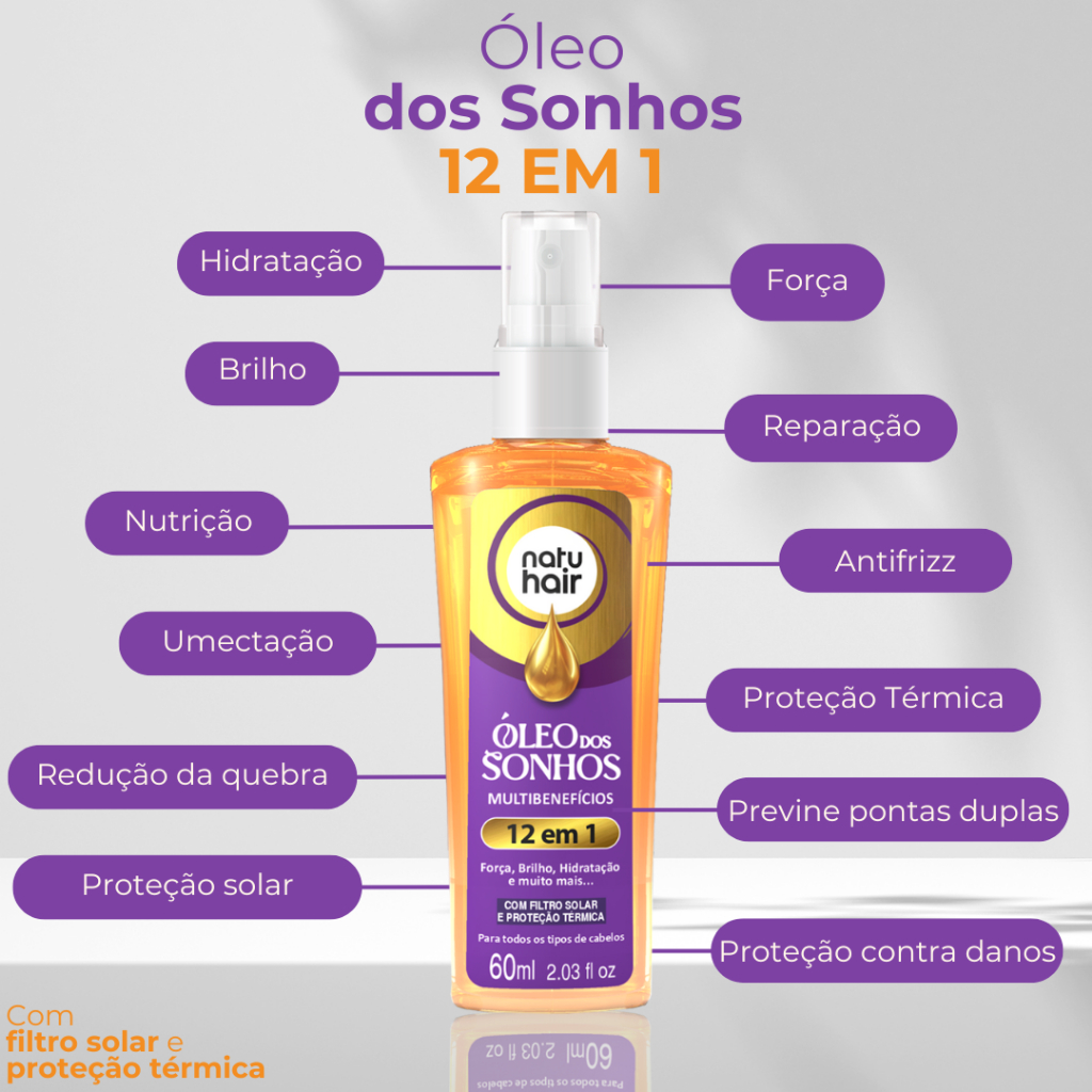 Kit Protetor Térmico+Óleo dos sonhos 12 em 1+Super Óleos+Terapia Capilar+Cachos Natuhair 60ml