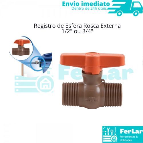 Registro De Esfera Rosca Externa, 1/2" e 3/4", Marrom, Para Instalações Hidráulicas De Água Fria