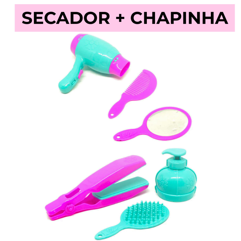 KIT BELEZA COM SECADOR + CHAPINHA/ BRINQUEDO INFANTIL MENINA SALÃO DE BELEZA