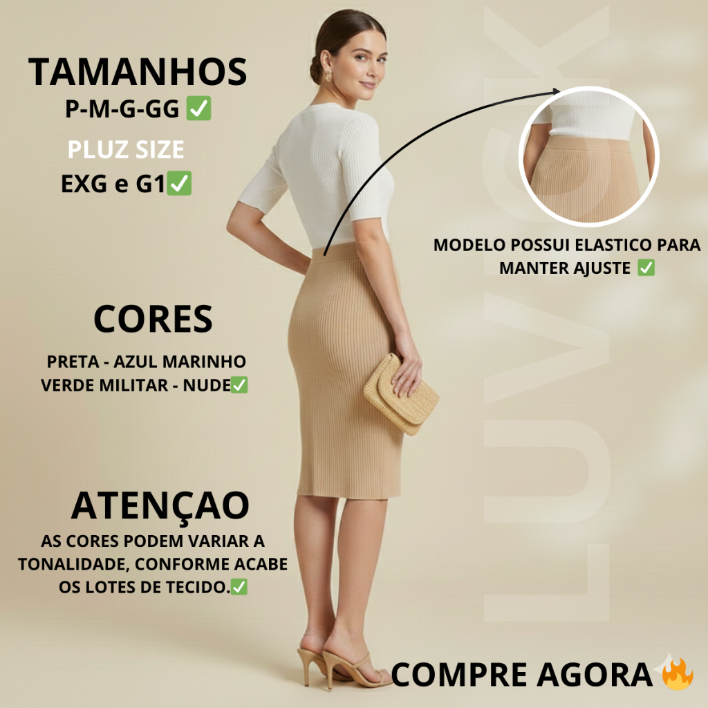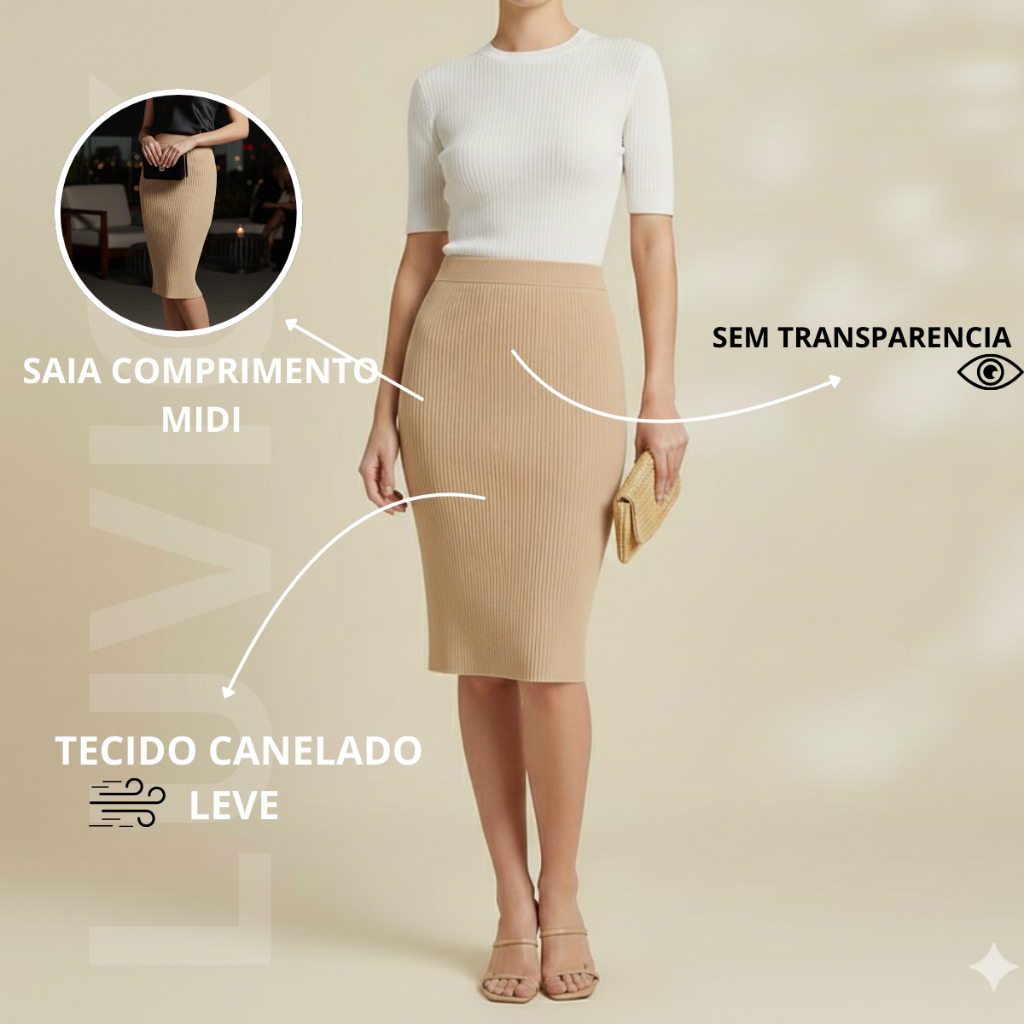 Saia Midi Canelada Feminina Evangélica Plus Size – Elegante e Confortável (EXG e G1)